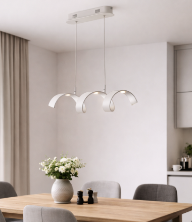 Závěsné svítidlo HELIX od značky FAN Europe vyniká ikonickým spirálovým tvarem, který působí lehce a vzdušně. V této kompaktní variantě s délkou 80 cm je ideální volbou nad menší jídelní stůl, kuchyňský ostrůvek nebo do bytových interiérů, kde není prostor pro delší svítidlo. Kombinace bílé a stříbrné barvy podtrhuje jeho čistý, moderní charakter.