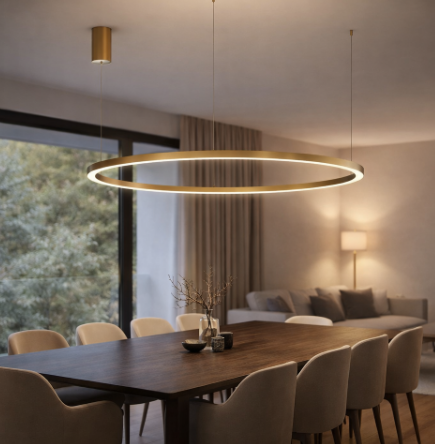 Minimalismus v luxusním pojetí. Závěsné LED svítidlo HOOP od značky FAN Europe zaujme čistým kruhovým tvarem a elegantním zlatým provedením, které dodá interiéru moderní a reprezentativní charakter. Díky velkorysému průměru 120 cm působí svítidlo vzdušně, ale zároveň výrazně – ideální jako centrální světelný prvek místnosti.