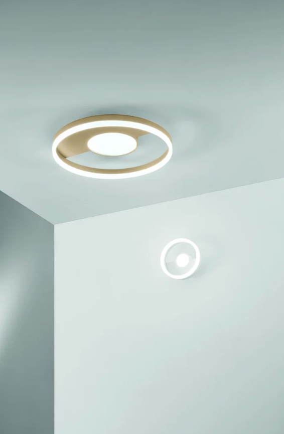 Design, který připomíná umělecké dílo: LED svítidlo FAN Europe KANDINSKY ve zlatém provedení vyniká svým geometrickým kruhovým tvarem a jemným kontrastem ploch. Inspirace moderním uměním se zde snoubí s funkčností, díky čemuž vzniká svítidlo, které nejen osvětluje prostor, ale zároveň ho stylově dotváří.