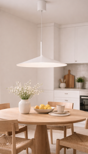 Světelný tok 2405 lumenů poskytuje dostatek světla pro každodenní stolování, práci i setkávání s rodinou. Svítidlo je ideální nad jídelní stůl, kuchyňský ostrůvek nebo jako centrální prvek menšího obývacího prostoru.