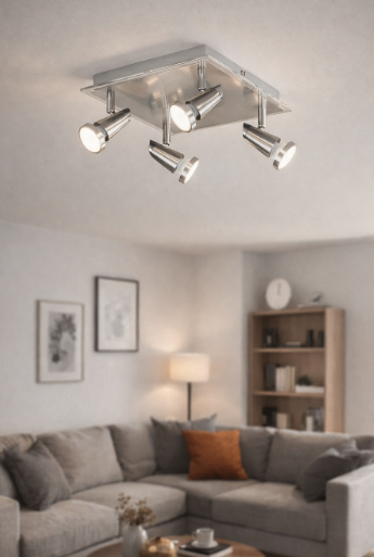 Stylové stropní svítidlo FAN Europe MIAMI přináší kombinaci moderního designu a praktického využití. Díky čistým liniím, lesklému chromovému provedení a čtyřem směrovatelným reflektorům se stává ideální volbou pro současné interiéry. Světlo o teplotě 2700K vytváří příjemnou atmosféru, která se hodí jak do obývacího pokoje, tak do ložnice či chodby.