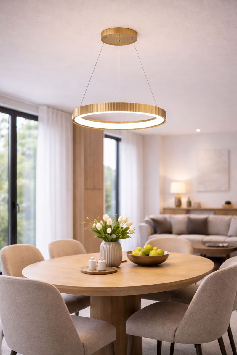 Elegantní kruh, který definuje prostor: závěsné LED svítidlo FAN Europe NIKE ve zlatém provedení přináší do interiéru moderní design s nádechem luxusu. Jemně strukturovaný povrch v kombinaci s čistou kruhovou linií působí sofistikovaně a zároveň velmi lehce. Díky průměru 49 cm je svítidlo ideální volbou jako centrální světlo do středně velkých místností.