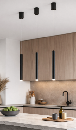 Závěsné svítidlo FAN Europe PYPE 5W v elegantní černé barvě představuje čistotu tvaru a precizní moderní design. Štíhlý válcový tubus zavěšený na subtilním kabelu vytváří jemný světelný akcent, který se hodí nad noční stolek, barový pult, kuchyňský ostrůvek nebo jako součást vícenásobné kompozice.