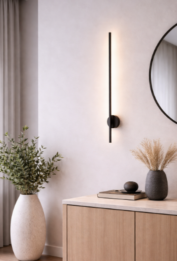 Nástěnné LED svítidlo SHANGHAI od značky FAN Europe v černém provedení představuje minimalistický a elegantní doplněk moderních interiérů. Štíhlá světelná linie vytváří na stěně jemný světelný efekt a díky jednoduchému tvaru působí velmi čistě a nadčasově. Černá barva dodává svítidlu výrazný charakter a perfektně vynikne na světlé stěně.