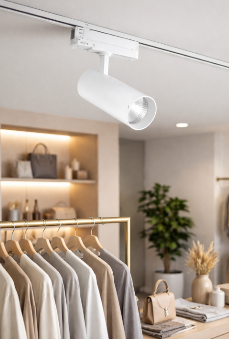 Minimalistické válcové tělo v bílé barvě působí čistě a profesionálně, zatímco směrovatelná konstrukce umožňuje přesně nasvítit konkrétní objekty nebo zóny. Díky úhlu svícení 38° je svítidlo perfektní pro akcentové i funkční osvětlení.