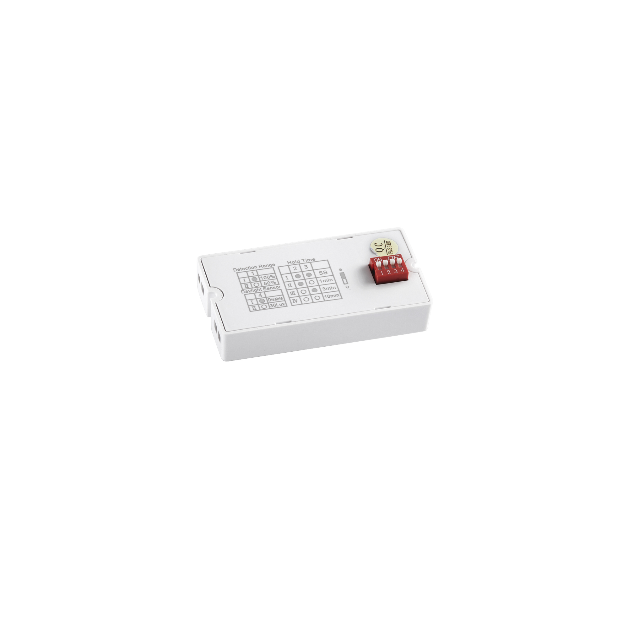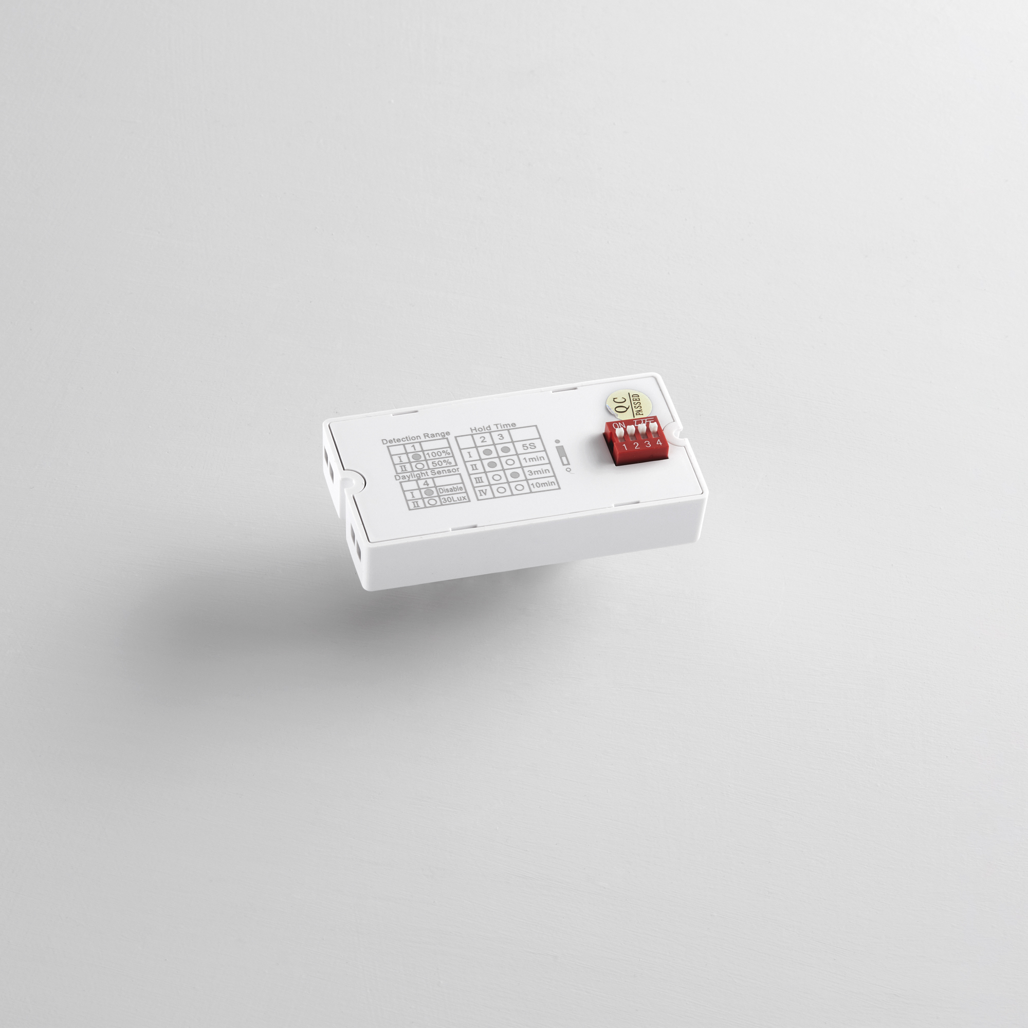- sepnutí při detekci pohybu až při setmění (za běžného dne při dostatku světla tedy nesepne), v krocích vypnuto nebo od 30Lux
