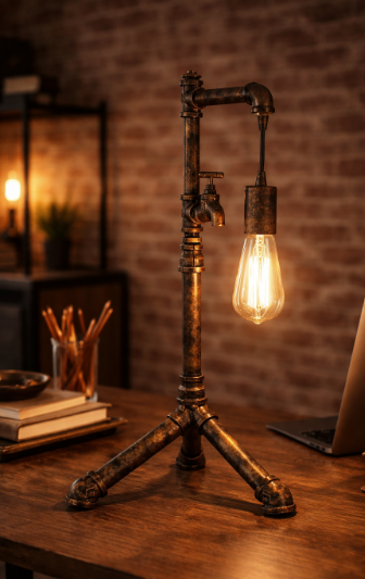 Stolní lampa FAN Europe AMARCORD v tmavém patinovaném provedení přináší do interiéru autentickou atmosféru starých industriálních prostor. Konstrukce inspirovaná potrubím je doplněna o detail kohoutku, který dodává lampě jedinečný charakter. Teplý odstín kovu v kombinaci s dekorativní žárovkou vytváří příjemné, útulné osvětlení ideální pro večerní relaxaci.