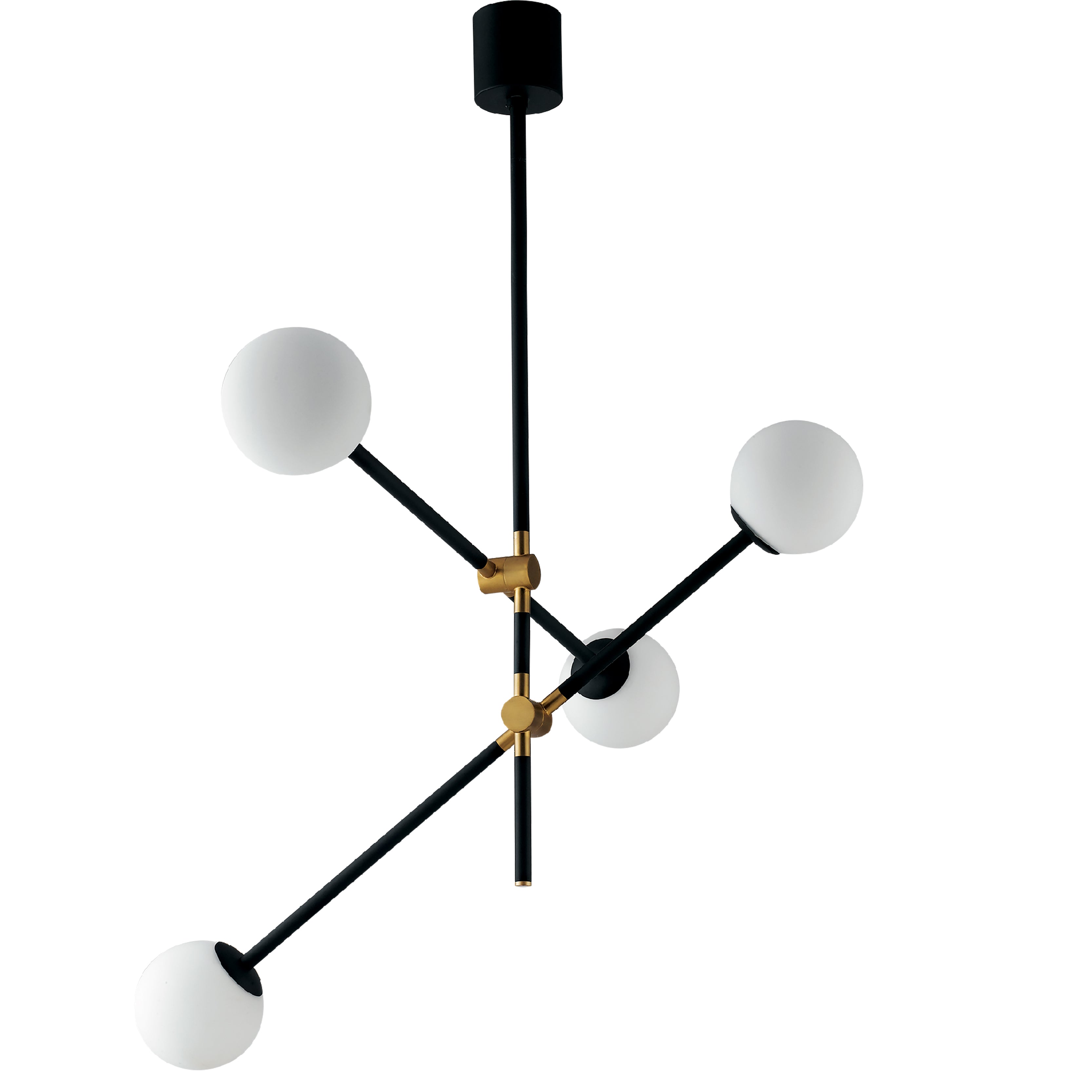 Svítidlo ANTITESI přináší do každého interiéru eleganci s nádechem moderní funkčnosti. Minimalistický černý matný kov v kombinaci se zlatými detaily a opálovou skleněnou koulí tvoří dokonalý vizuální kontrast. Díky otočným ramenům máte možnost přizpůsobit světlo podle svých potřeb, čímž svítidlo zajišťuje nejen estetickou hodnotu, ale i praktické využití.