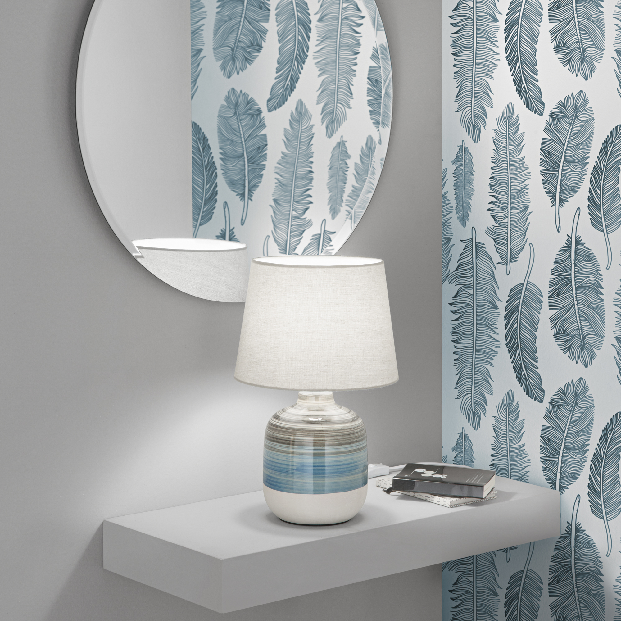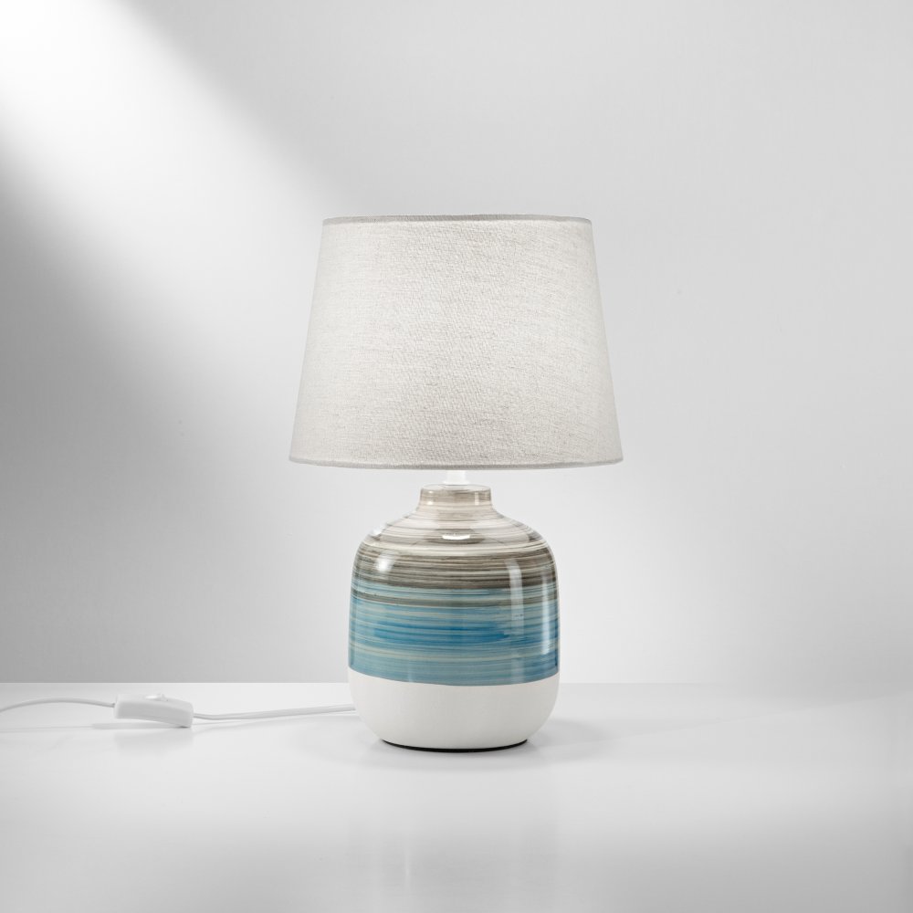 Stolní lampa APACHE přináší do vašeho prostoru pocit klidu a elegance, a to díky nádhernému spojení šedé a světle modré barvy, které se elegantně prolínají s bílým pískovaným pozadím. Tento fascinující mix barev vytváří jemnou harmonii, která se hodí do různých interiérů, od moderních kanceláří až po útulné obývací pokoje. Bílé látkové stínidlo pak zajistí příjemné a jemné osvětlení, které pozvedne každou místnost a přidá jí nádech svěžesti a světlosti.