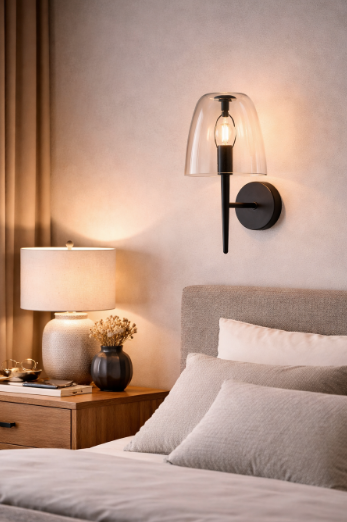 Nástěnné svítidlo FAN Europe ARES v průhledném provedení spojuje čiré sklo a černou kovovou konstrukci do elegantního a současného designu. Transparentní stínidlo působí lehce a zároveň nechává plně vyniknout samotný světelný zdroj.