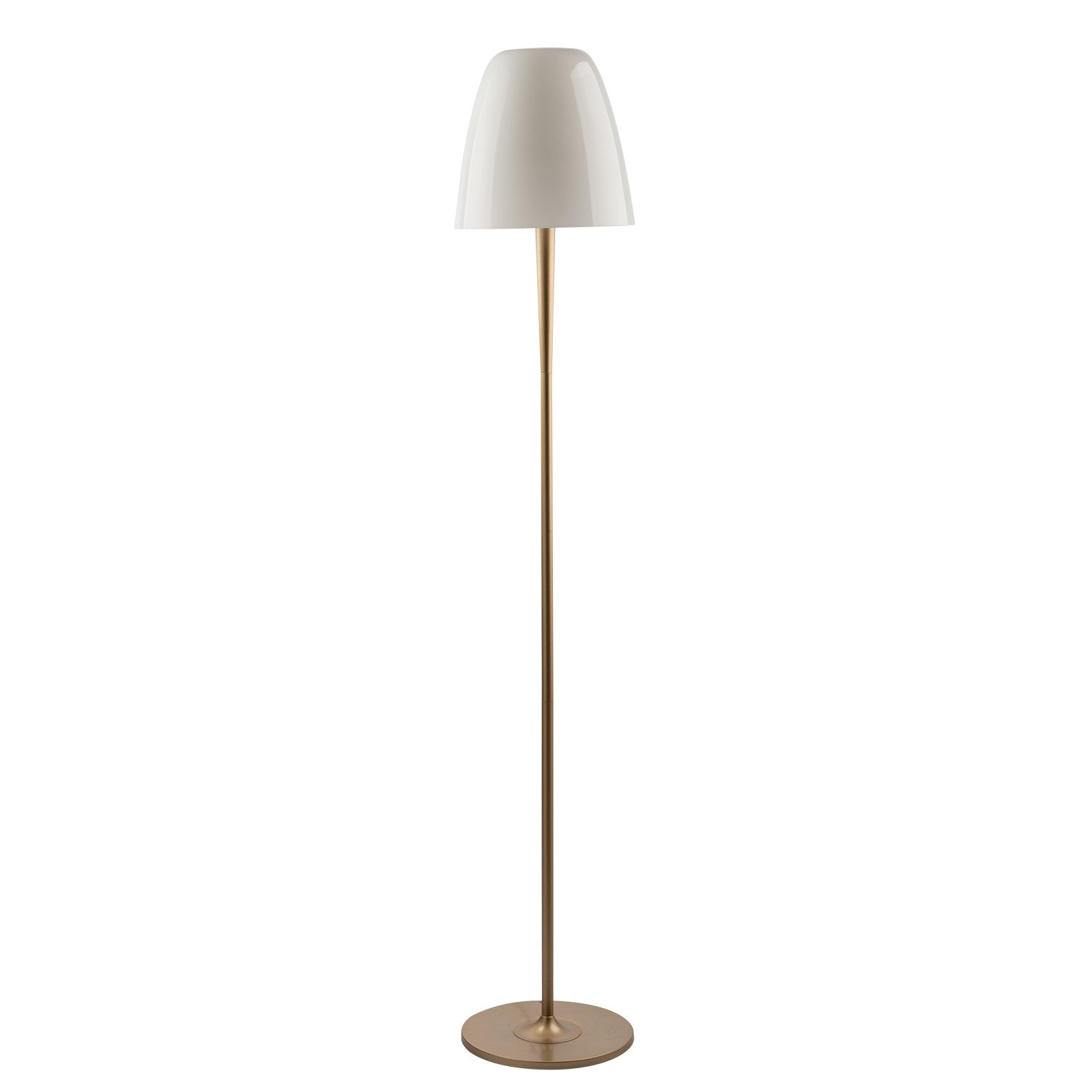 Stojací lampa ARES od italské značky FAN Europe je luxusním doplňkem, který spojuje jemnost a eleganci. Bílý difuzor z foukaného skla a saténově zlatá kovová základna tvoří harmonický kontrast, který přitahuje pozornost a zároveň zůstává sofistikovaně nenápadný. Tato lampa je ideální volbou pro ty, kteří hledají stylové osvětlení s nádechem luxusu pro své designové interiéry.