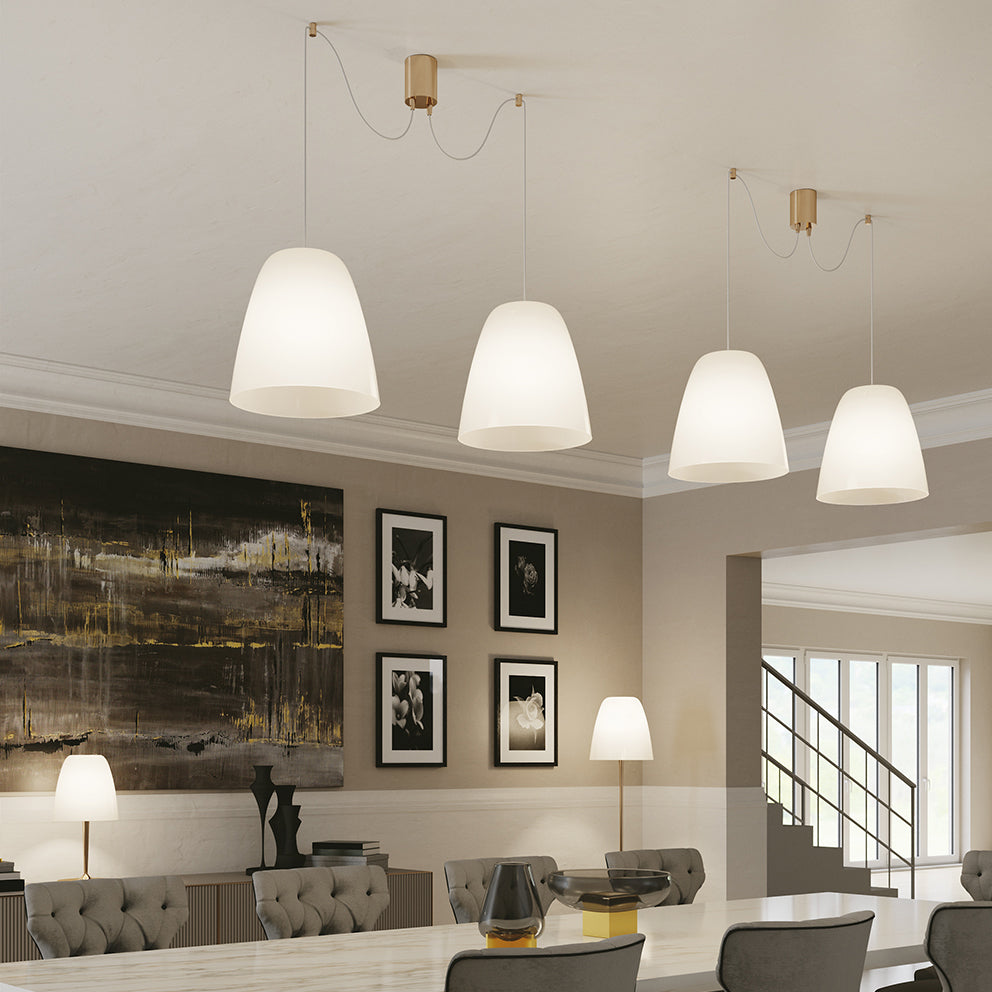 Přeneste do svého interiéru nádech jemné elegance a rafinovaného luxusu se závěsným svítidlem ARES od italské značky FAN Europe. Spojení čistoty bílého foukaného skla a saténově zlatého rámu vytváří harmonický kontrast, který působí moderně i nadčasově. Dva skleněné difuzory poskytují příjemné a rovnoměrné osvětlení, které promění každý prostor v útulné a stylové místo.
