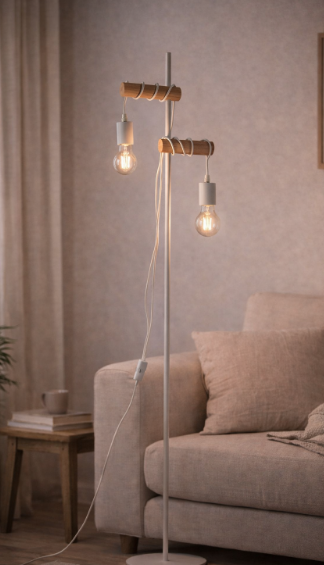 Stojací svítidlo FAN Europe ARIZONA vyniká svou jednoduchostí a lehkostí, kterou doplňuje přírodní dřevěný prvek. Kombinace bílé kovové konstrukce a dřeva vytváří harmonický celek inspirovaný skandinávským designem. Dva samostatné světelné zdroje přinášejí nejen funkčnost, ale i zajímavý vizuální efekt, který zaujme na první pohled.
