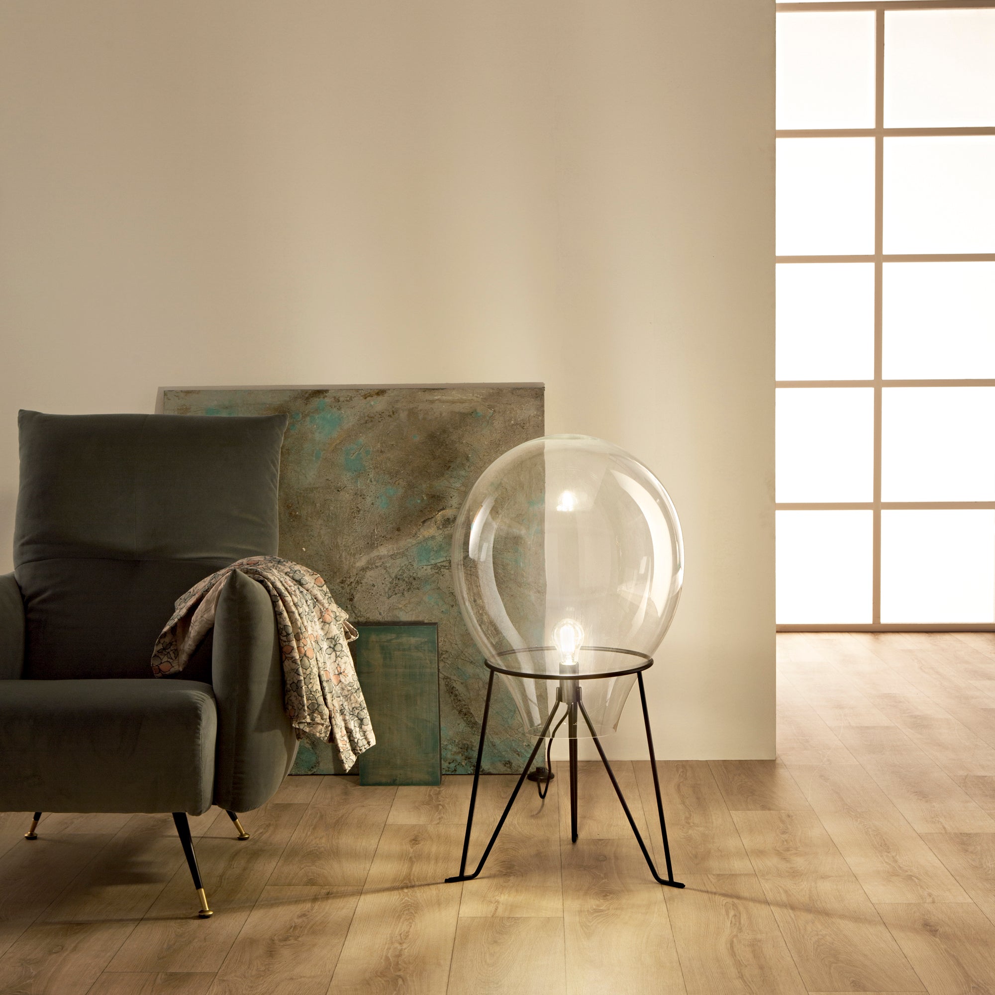 Pozvěte do svého interiéru kousek elegance a stylu se stojací lampou AZUMA od italské značky FAN EUROPE. Tento unikátní designový kousek ve tvaru kapky je vyroben z kvalitního průhledného foukaného skla, které v kombinaci s jemnou saténově černou kovovou konstrukcí vytváří sofistikovanou hru světla a stínu. Svítidlo AZUMA není jen zdrojem světla, je to umělecký prvek, který podtrhuje krásu každého prostoru.
