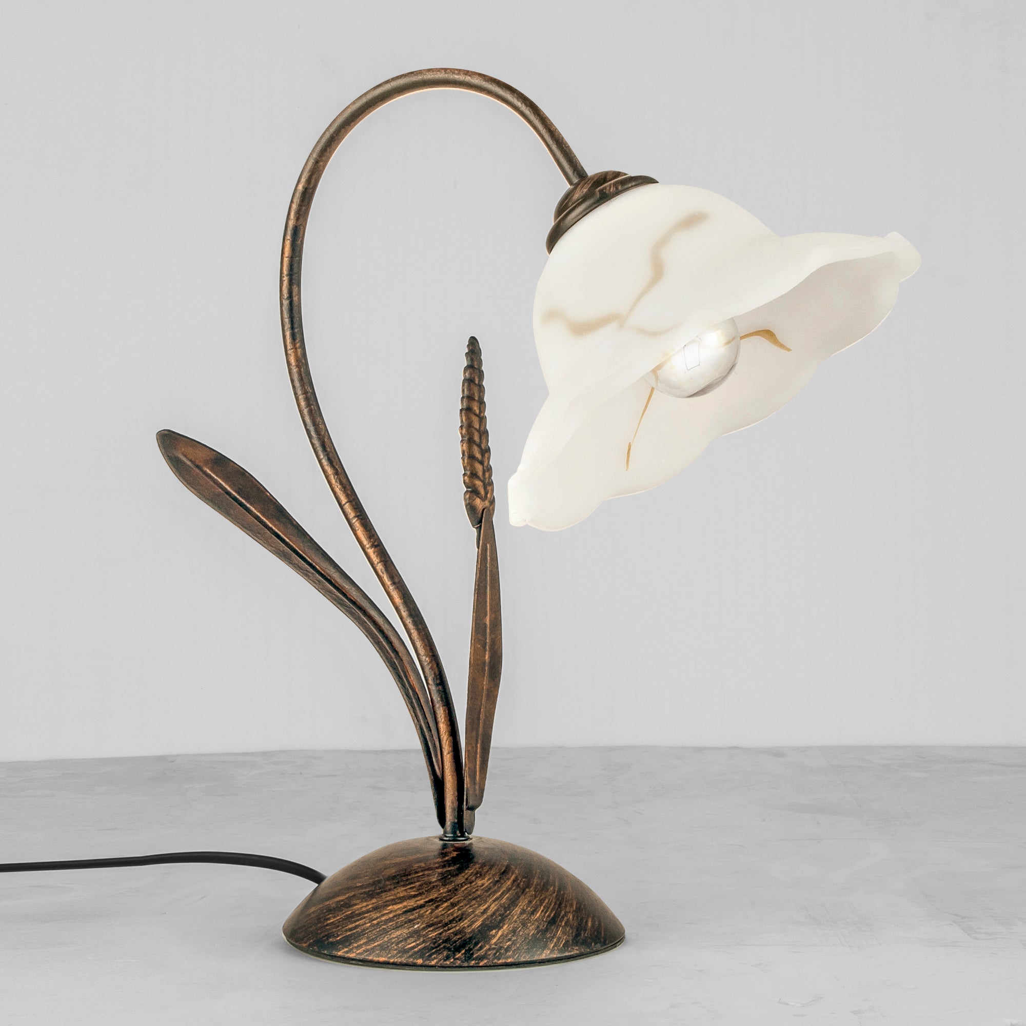 Má skleněný, ručně tvarovaný difuzor květinového tvaru a hnědé kovové tělo s ručně zdobenými doplňky. BYRON je rustikální osvětlení pro ty, kteří mají rádi zajímavé doplňky v romantickém stylu. V kombinaci s LED žárovkou bude perfektním osvětlením obývacího pokoje, ložnice, restaurace nebo hotelu. Do produktu doporučujeme retro žárovku s paticí E27, ta není součástí produktu.