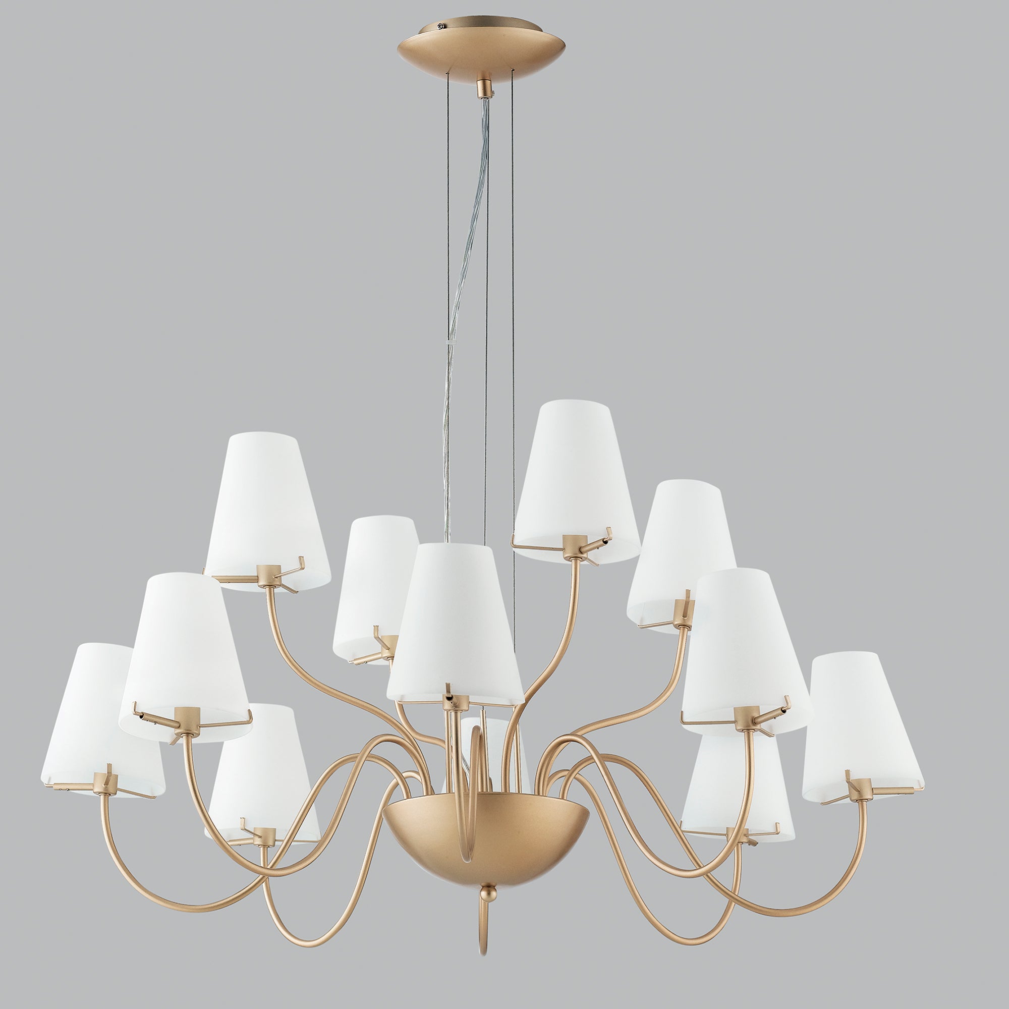 Závěsné svítidlo CANTO je ideální volbou pro ty, kteří chtějí svůj domov nebo kancelář doplnit o kousek, který nejen osvítí prostor, ale také ho stylově dotvoří. Zlatý kovový povrch dodává místnosti teplo a noblesu, zatímco bílá opálová skla vytvářejí příjemné světelné efekty. Ať už ji umístíte do obývacího pokoje, ložnice, či do designového studia, tato stojací lampa upoutá pozornost svou jednoduchou krásou.