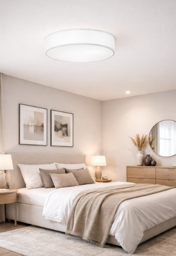 ✔️ Textilní stínidlo – příjemné a rovnoměrné světlo