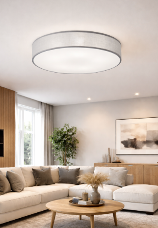 ✔️ Textilní stínidlo – měkké světlo bez ostrých stínů