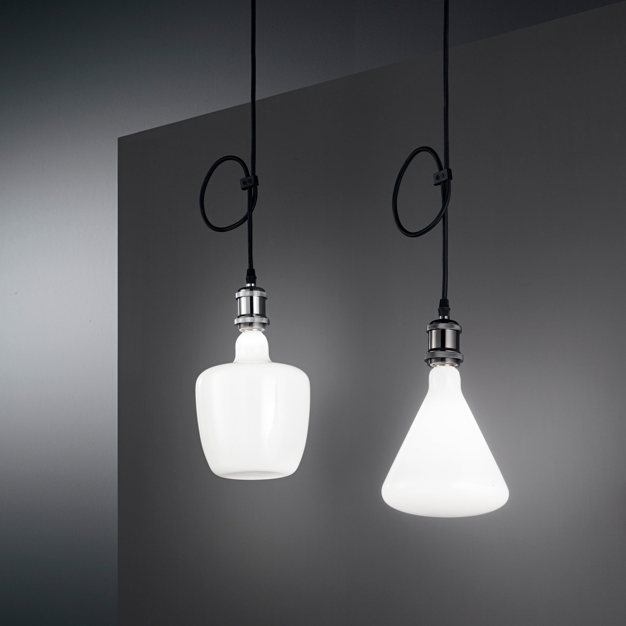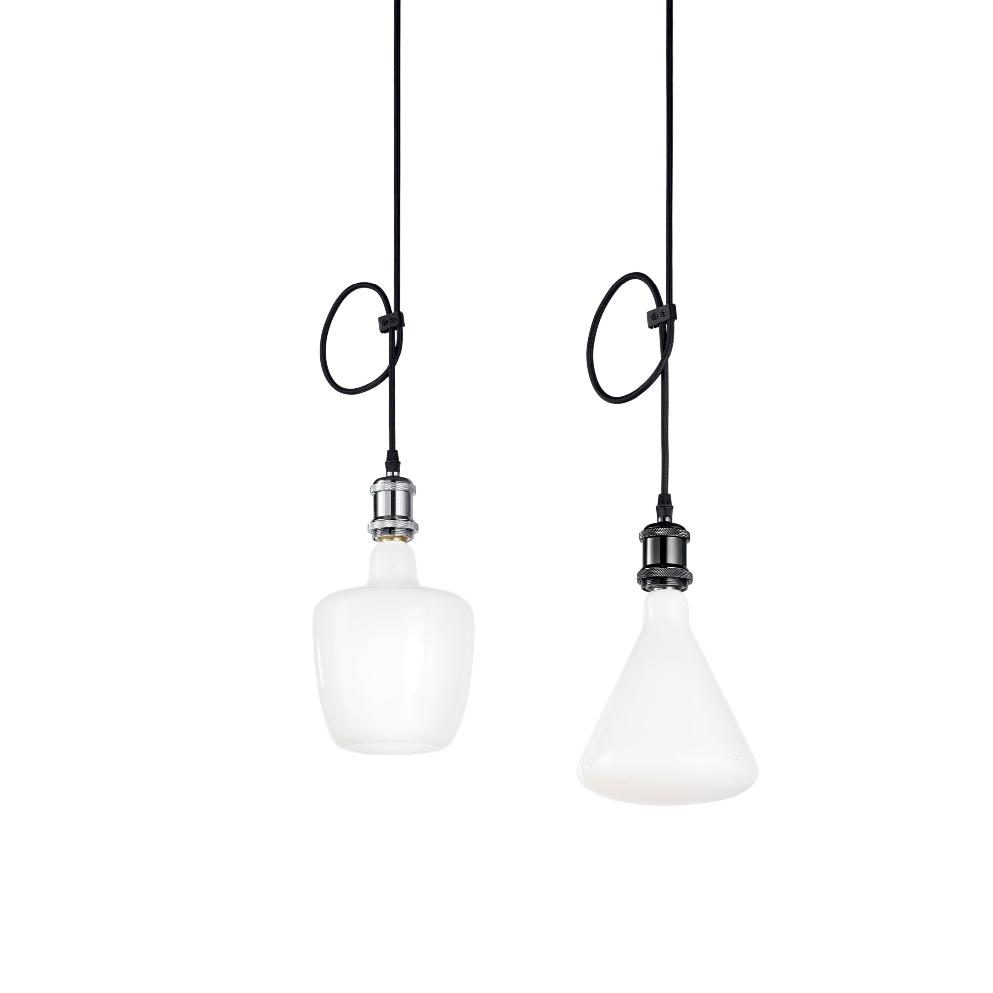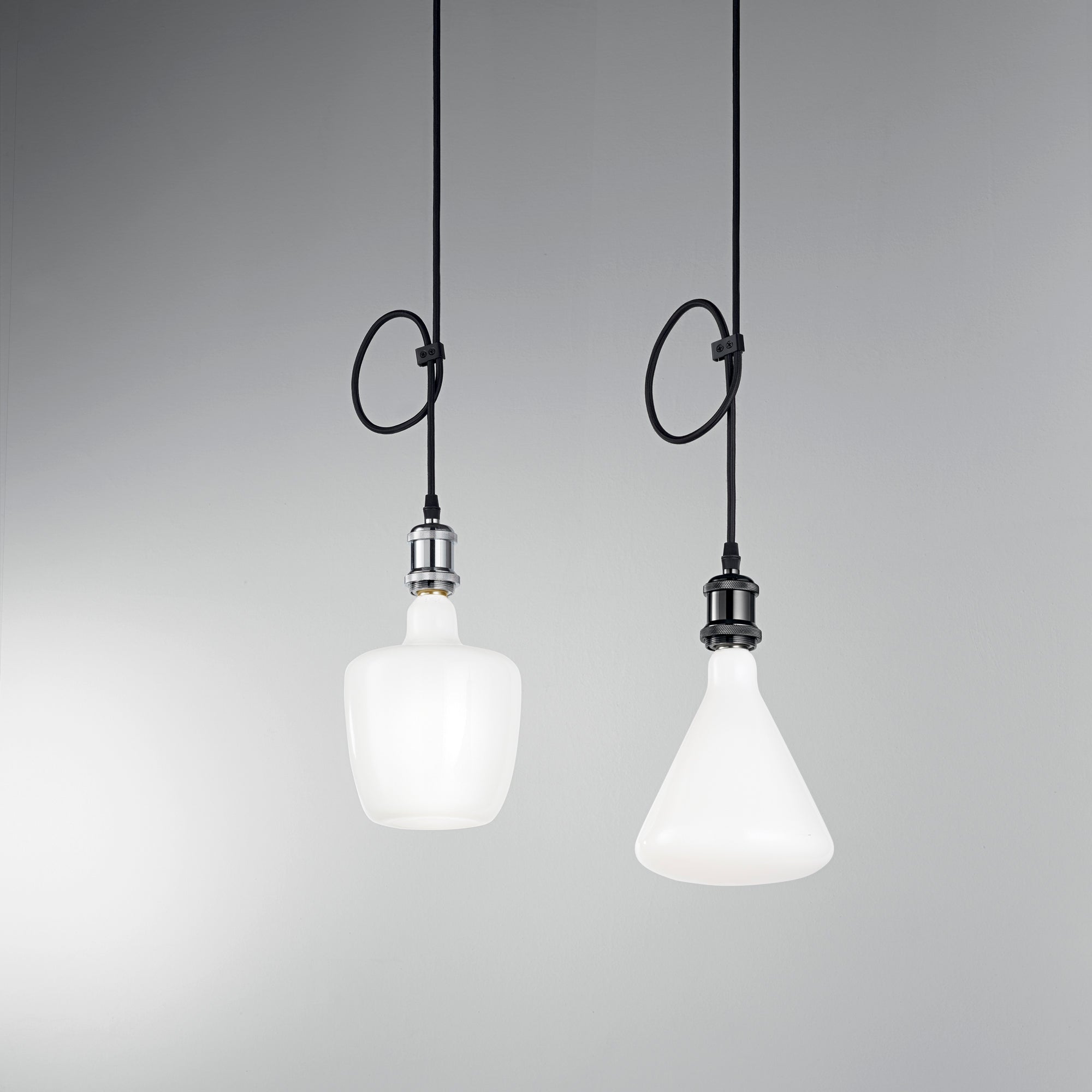 CLOCK je závěs skládající se z černého látkového kabelu a černého hliníkového držáku lampy, k dispozici také v chromu. Díky přiloženému třífázovému adaptéru je možné instalovat jeden nebo více prvků na dráhu, kterou lze zakoupit samostatně.