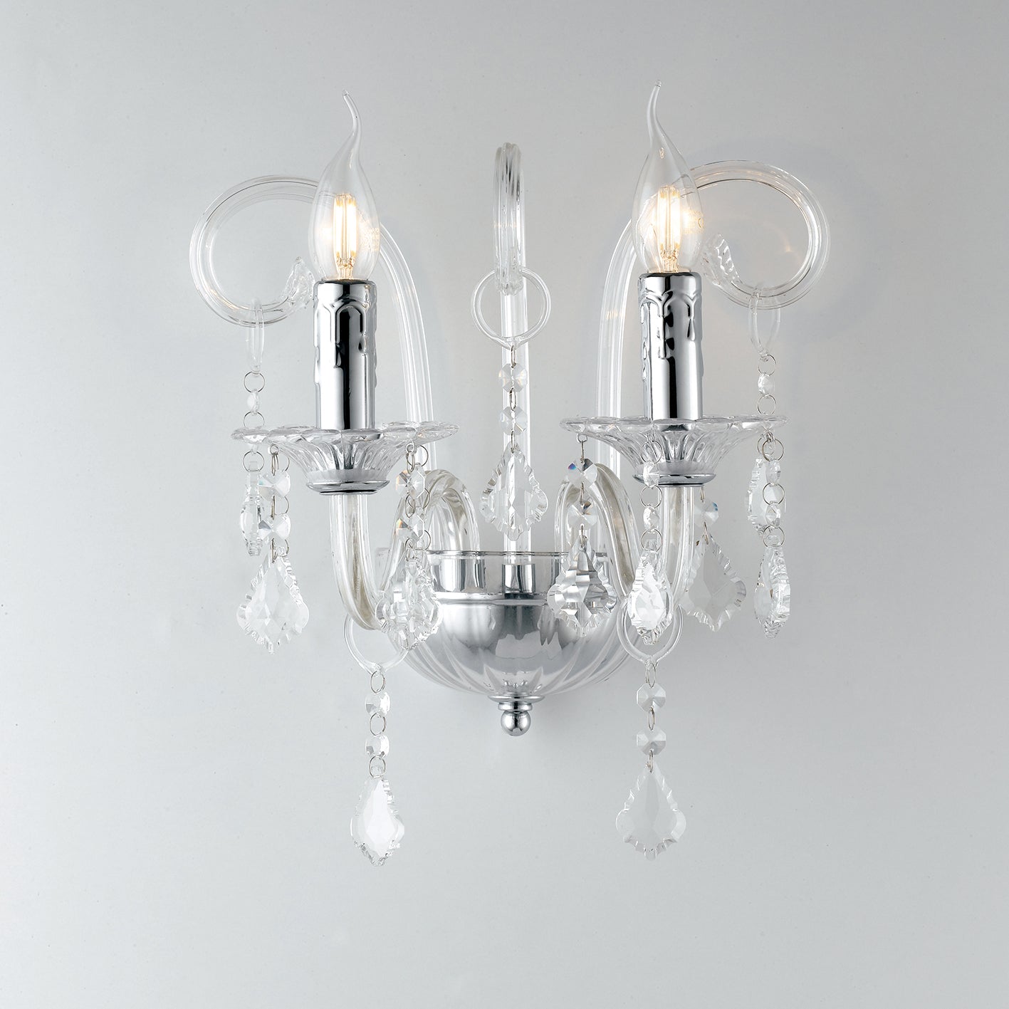 Nástěnné svítidlo FAN Europe CRISTALLO je elegantním doplňkem pro interiéry, které si zakládají na detailech. Jemně tvarovaná skleněná ramena v kombinaci s dekorativními křišťálovými ověsy vytvářejí krásnou hru světla, která dodá prostoru útulnou a zároveň luxusní atmosféru. Díky dvěma světelným bodům je ideální jako doplňkové osvětlení.