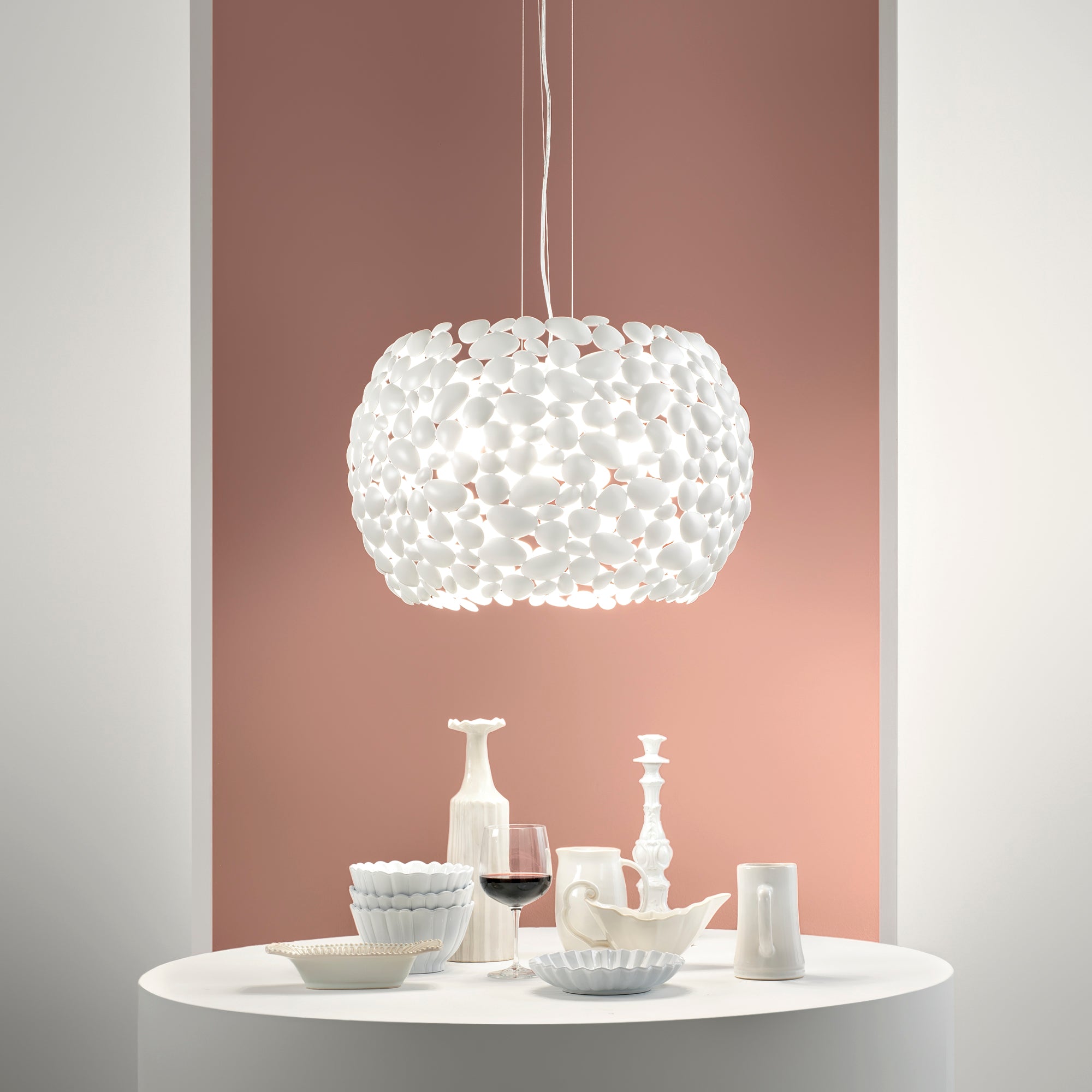 Jakmile se světlo rozsvítí, DIONISO promění vaše obytné nebo pracovní prostory na příjemné a stylové prostředí. Jeho bílý povrch nejen že skvěle odráží světlo, ale také přidává sofistikovanost a šmrnc, který upoutá pozornost každého návštěvníka. Závěsné svítidlo se skvěle hodí nad jídelní stůl, do obývacího pokoje nebo jako designový prvek v kanceláři.