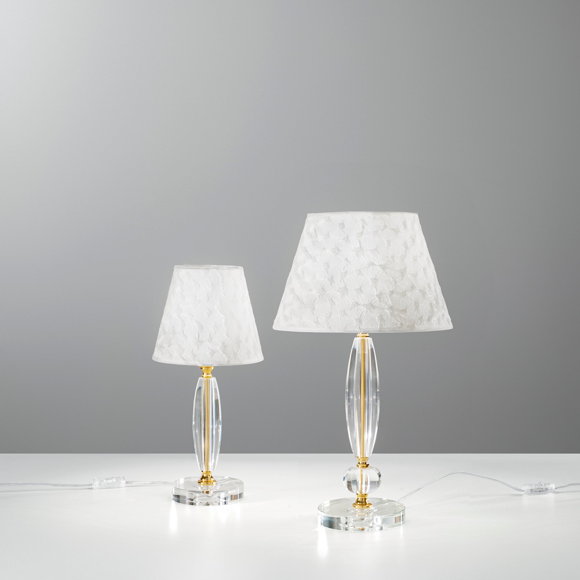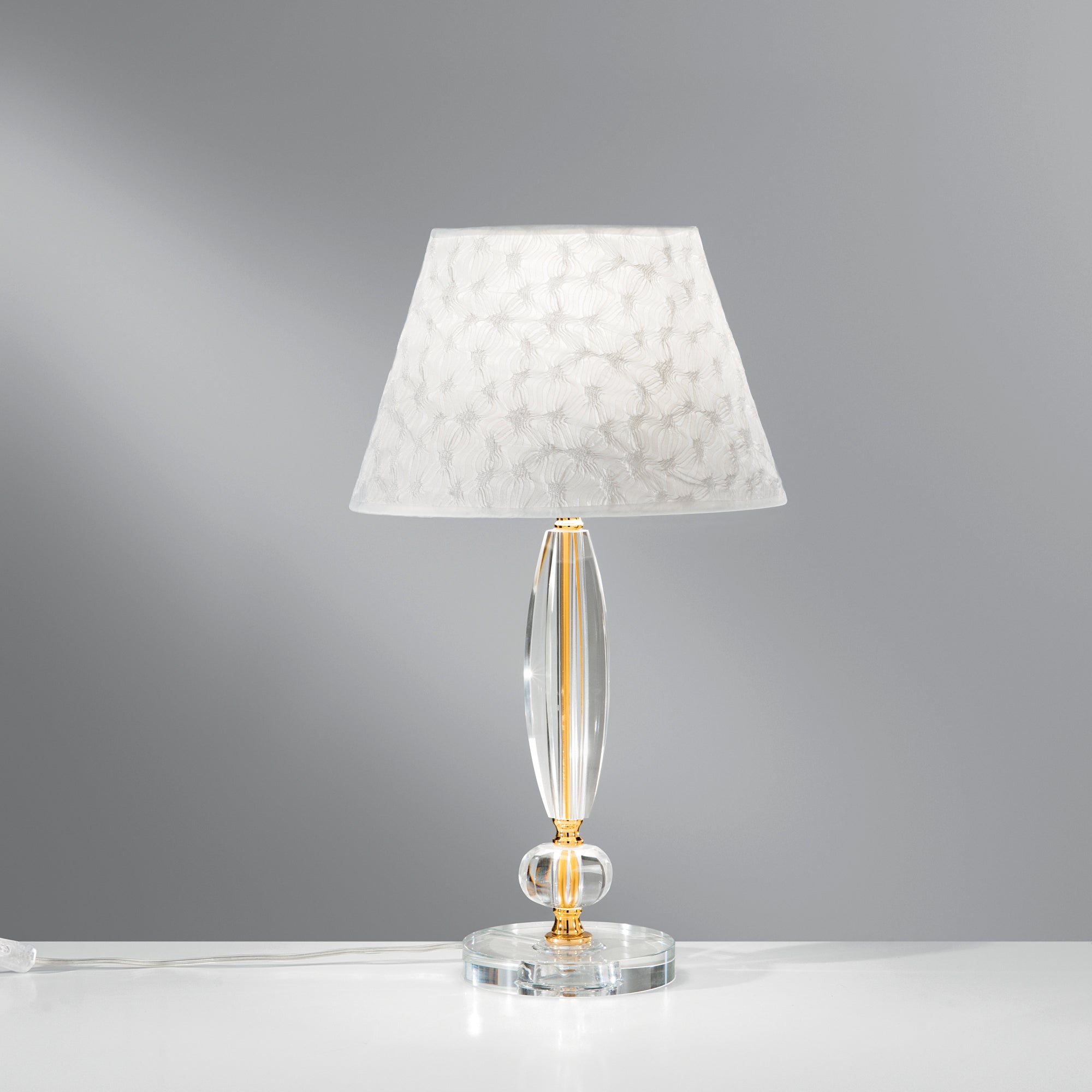 Dodejte svému prostoru nádech noblesy a teplého kouzla se stolní lampou FAN Europe EPOQUE. Tato lampa je harmonickým spojením rafinovaného zlatého kovu, ručně foukaného čirého skla a elegantního bílého textilního stínidla. Její jemný design a precizní detaily vytvářejí jedinečný prvek, který vnese do vašeho interiéru pocit luxusu a sofistikace.