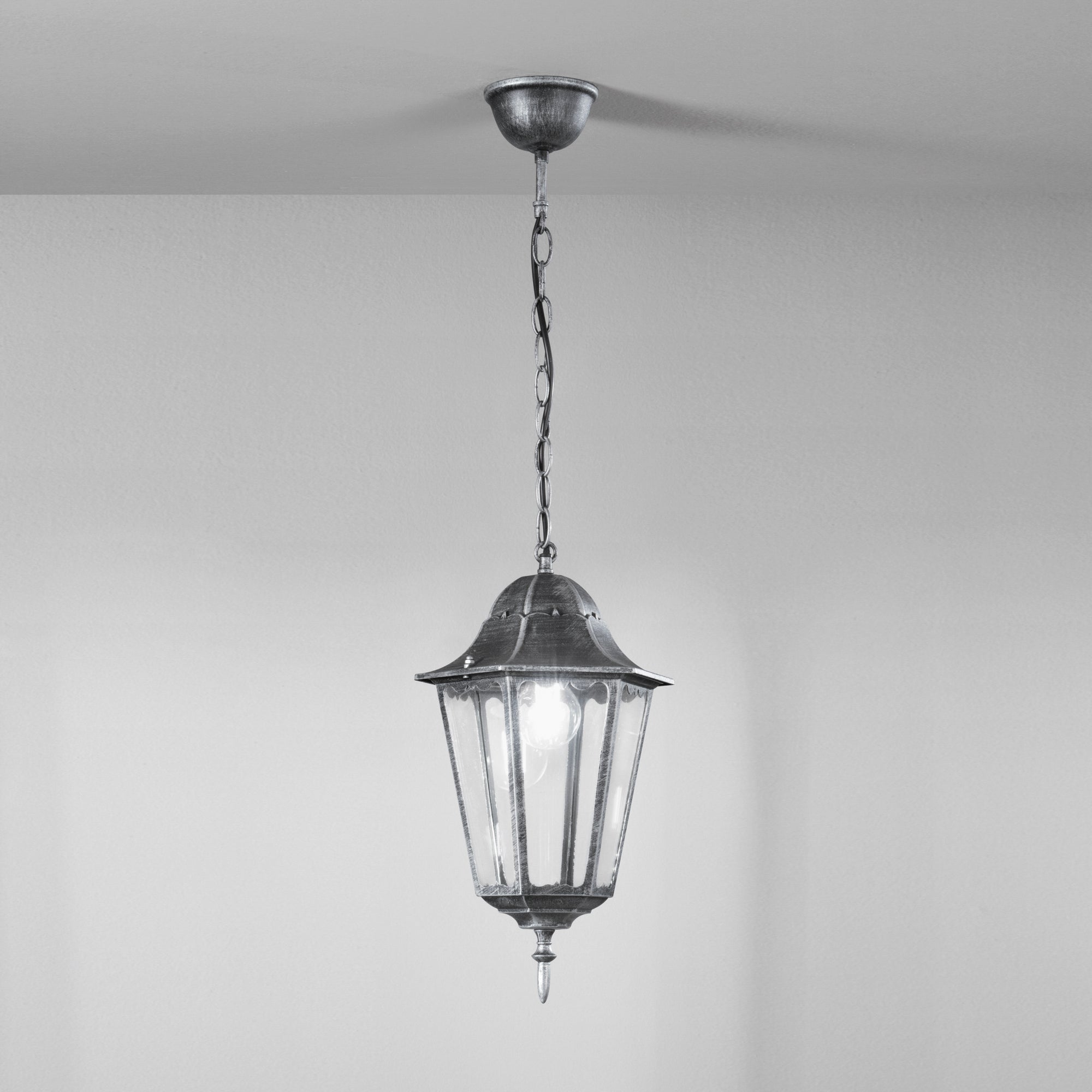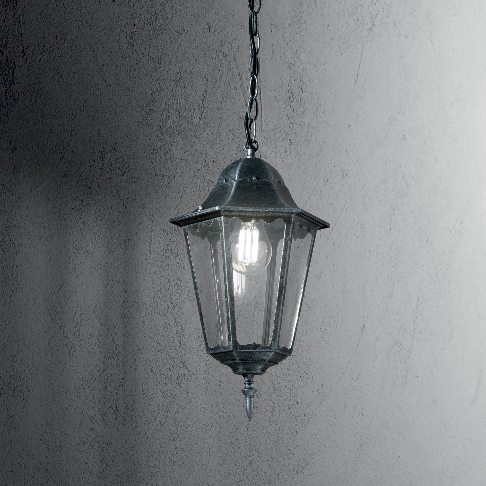Závěsné svítidlo FIRENZE přináší do vašeho venkovního prostoru nejenom světlo, ale i eleganci a šarm. Tato závěsná lucerna z broušeného černého tlakově litého hliníku se stříbrným tahem štětce s průhledným skleněným difuzorem není pouze prostředkem k osvětlení, ale také designovým prvkem, který okouzlí vaše okolí.