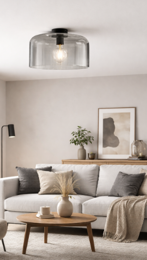 Moderní elegance v jemně kouřovém tónu – stropní svítidlo GIBUS od značky FAN Europe přináší harmonii mezi minimalistickým designem a útulnou atmosférou. Dominantní skleněné stínidlo v kouřovém provedení decentně rozptyluje světlo a vytváří příjemný světelný efekt, který zútulní každý interiér. Díky průměru 35 cm je ideální jako hlavní světlo do menších a středně velkých místností nebo jako designový prvek do moderních prostor.