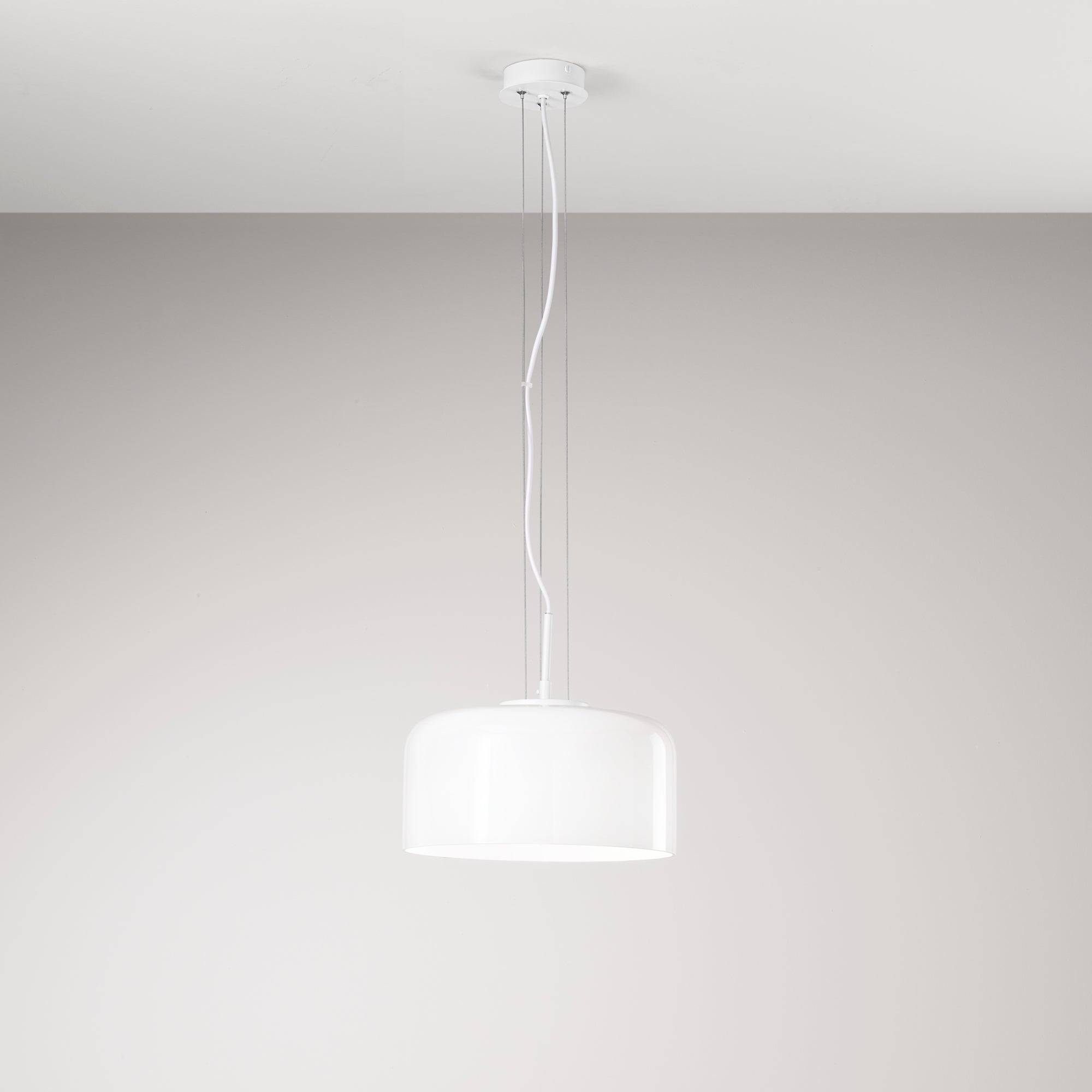 Vytvořte si domov plný elegance a moderního stylu s závěsným lustrem FAN Europe GIBUS. Tento lustr z lesklého foukaného skla s čistými, lineárními tvary přináší do každého prostoru nádech luxusu a sophistication. Jeho minimalistický design v kombinaci s hladkým bílým sklem vytváří dokonalý světelný akcent, který se hodí do obývacího pokoje, jídelny či kanceláře.