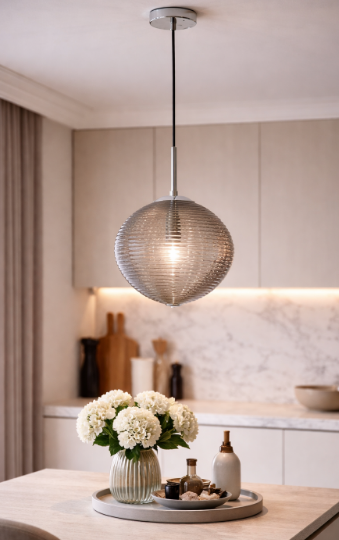 Díky průměru 25 cm je svítidlo dostatečně výrazné jako samostatný prvek nad jídelním stolem, nočním stolkem či konferenčním stolkem. Skvěle však funguje i v kombinaci více kusů v jedné linii nad kuchyňským ostrůvkem.