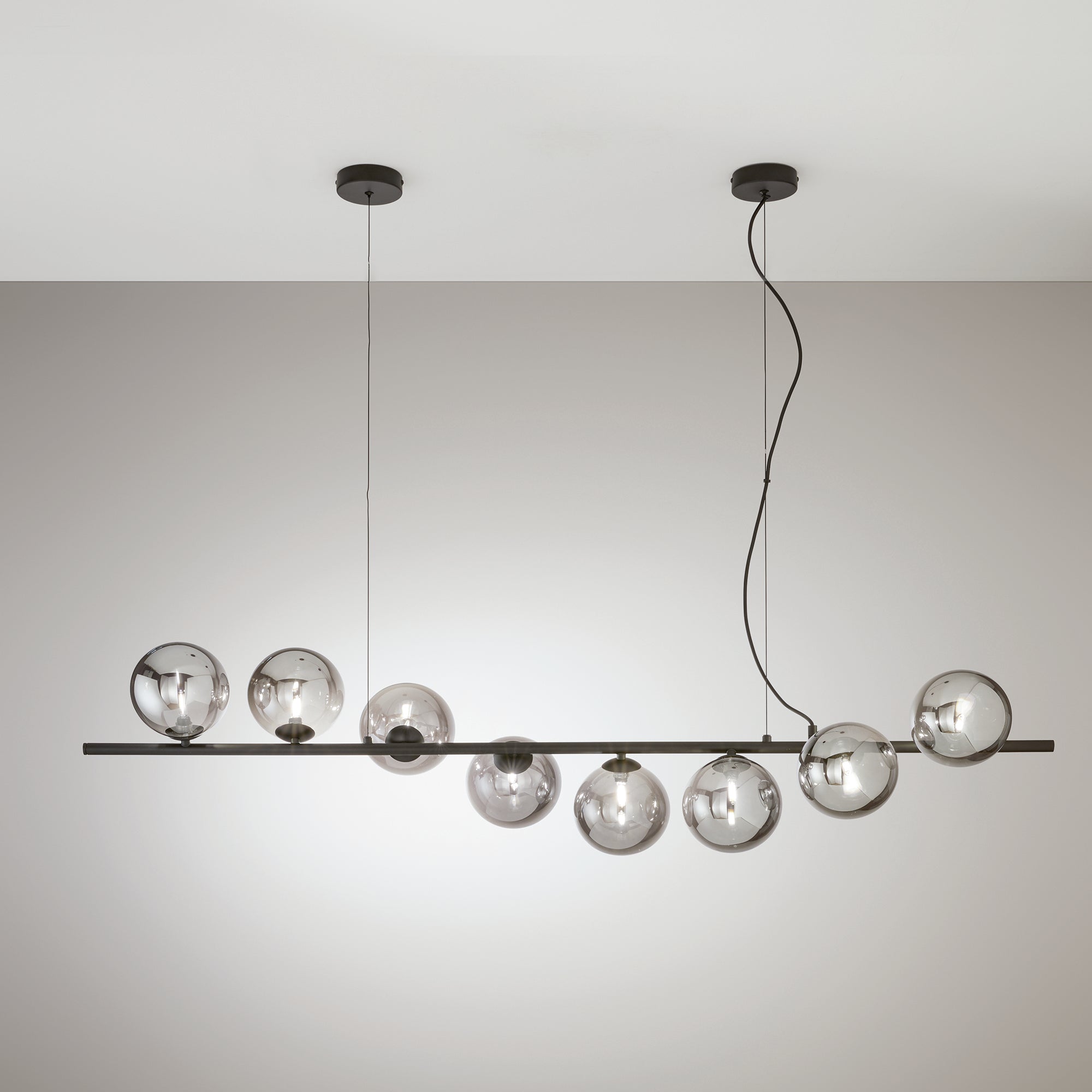 Díky svým čistým liniím a výraznému kontrastu materiálů se HONEY perfektně hodí do moderních interiérů, kde vynikne jako dominantní prvek nad jídelním stolem, v obývacím pokoji nebo v komerčních prostorech, jako jsou designová studia, hotely nebo restaurace. Kouřové sklo dodává světlu jemný, uklidňující nádech, který podtrhuje příjemnou a přátelskou atmosféru.