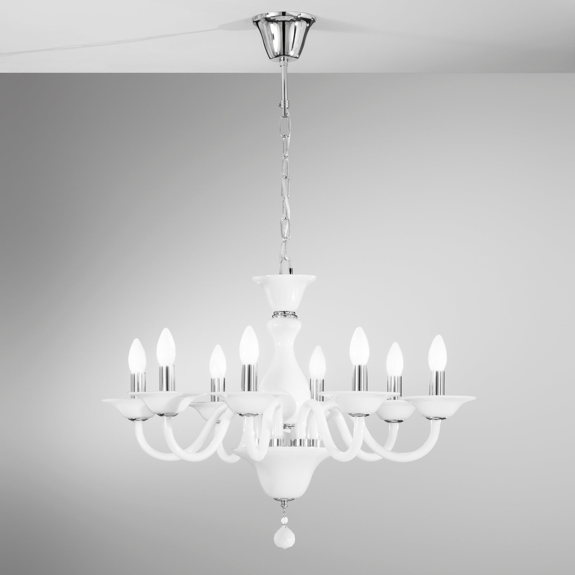 Vytvořte interiér plný jemnosti a vytříbeného vkusu se závěsným svítidlem FAN Europe SOFFIO. Jeho nadčasový design z bílého foukaného skla přináší do prostoru lehkost a harmonii. Osm světelných bodů, zvýrazněných lesklými chromovými detaily, dodává místnosti hřejivé osvětlení a zároveň okouzlující atmosféru, která zaujme na první pohled.