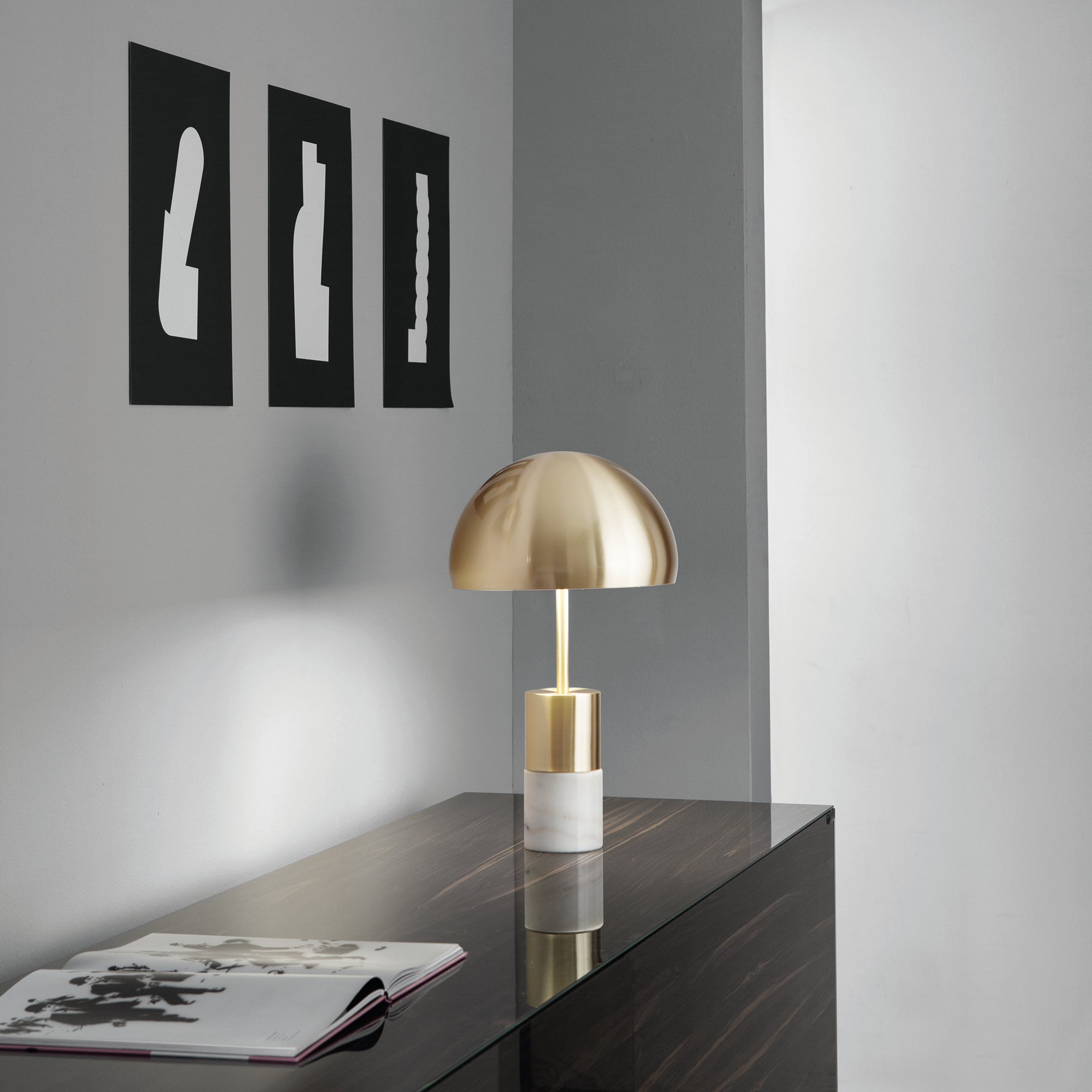 Vyrobena z odolného kovu s lesklou zlatou povrchovou úpravou, která dodává interiéru noblesu. Podstavec s mramorovým designem zvýrazňuje prémiový vzhled svítidla.