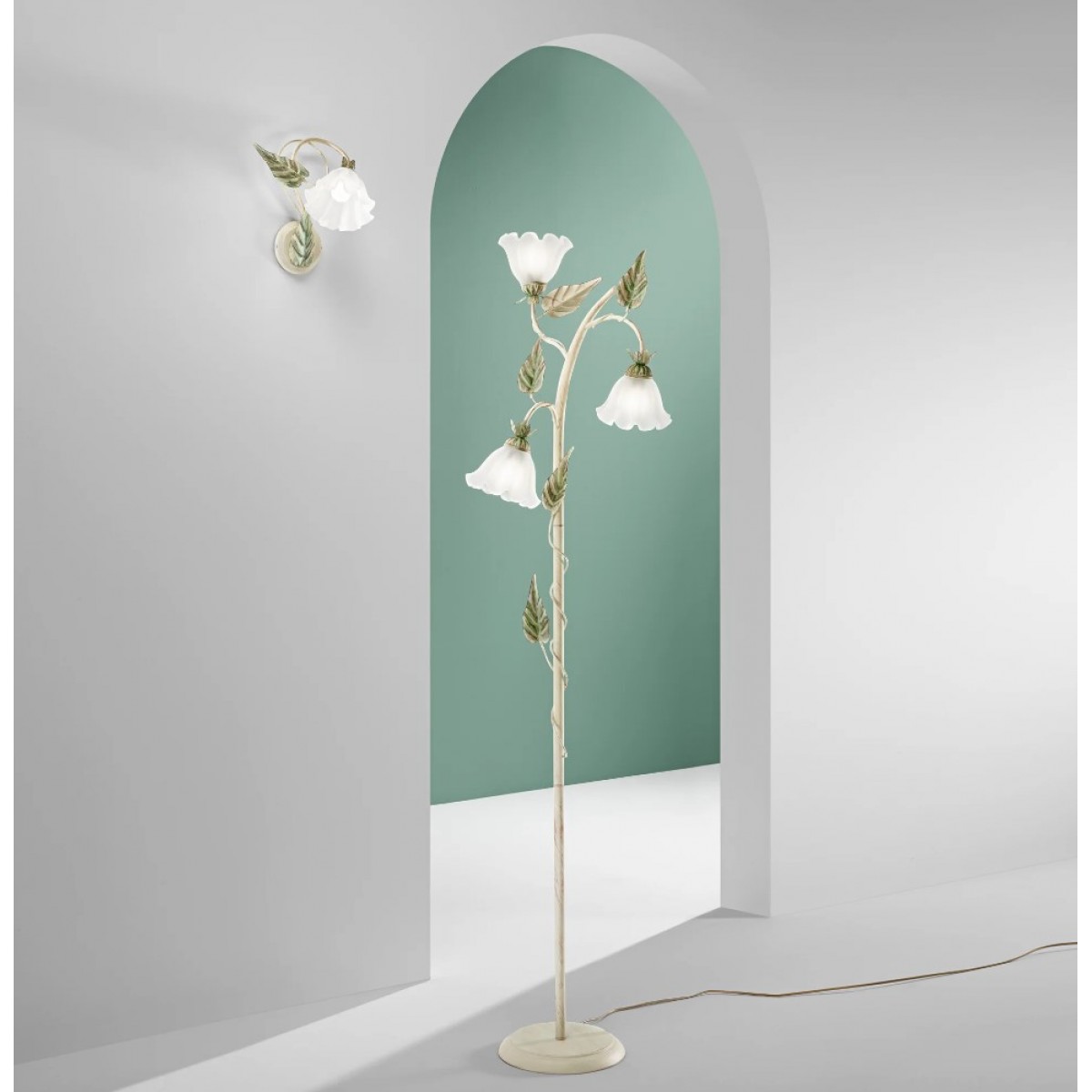 Stojací lampa FAN Europe ISOTTA okouzlí svým romantickým vzhledem inspirovaným přírodou. Jemně tvarovaná kovová konstrukce s dekorativními listy a květy působí lehce a vzdušně, zatímco tři skleněná stínidla ve tvaru květů rozptylují světlo do příjemného teplého tónu. Ideální volba pro vytvoření útulné atmosféry v klasicky i vintage laděných interiérech.