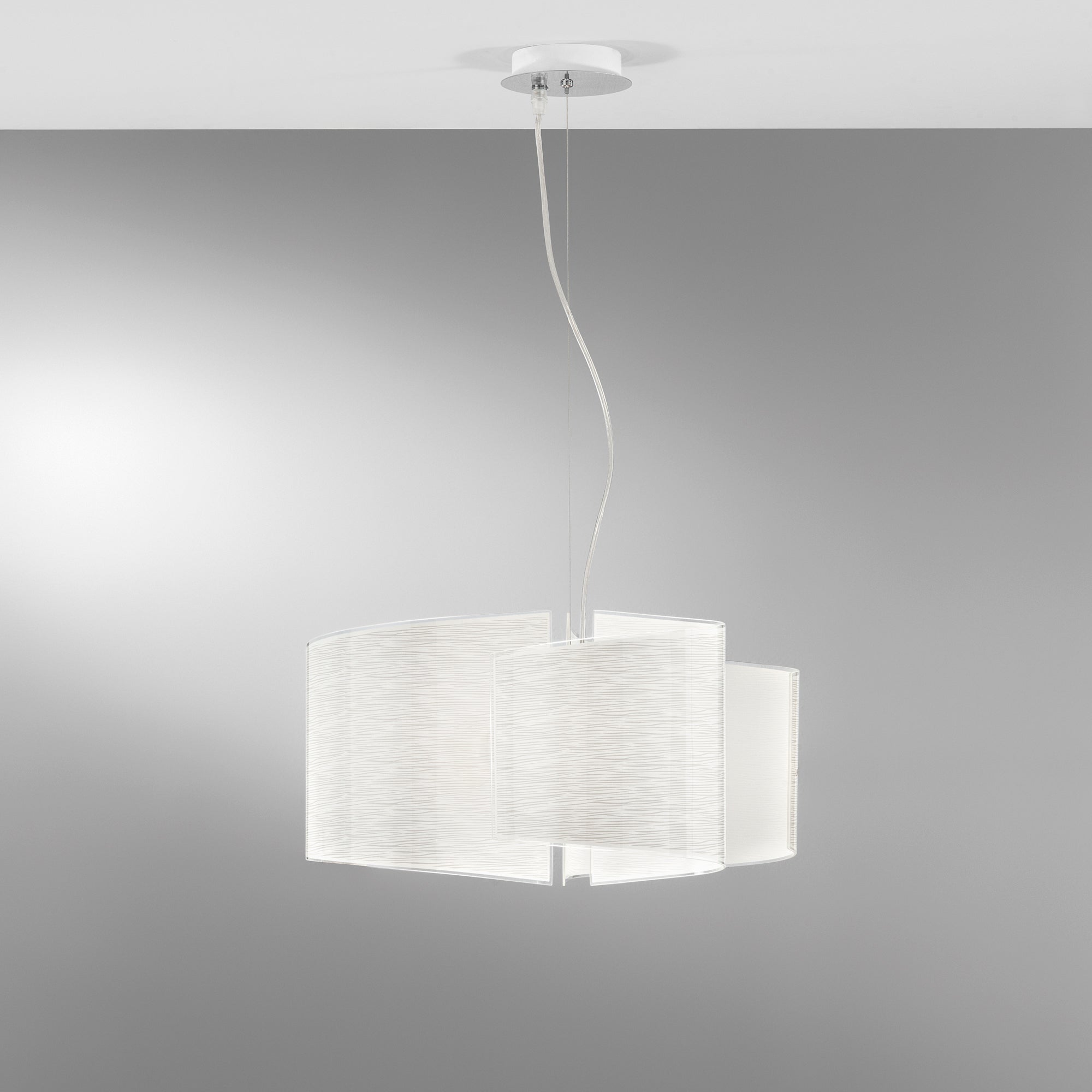 Závěsné svítidlo FAN Europe JOYCE je mistrovským dílem designu, které vnese do vašeho interiéru eleganci a šarm. Jeho zakřivené sklo s jemnou dekorací čar působí jako klenot, který rozzáří každý prostor. Tato lampa není jen zdrojem světla; je to umělecký prvek, který dokáže proměnit obyčejný pokoj na stylové a útulné místo, kde se budete cítit příjemně a inspirovaně.