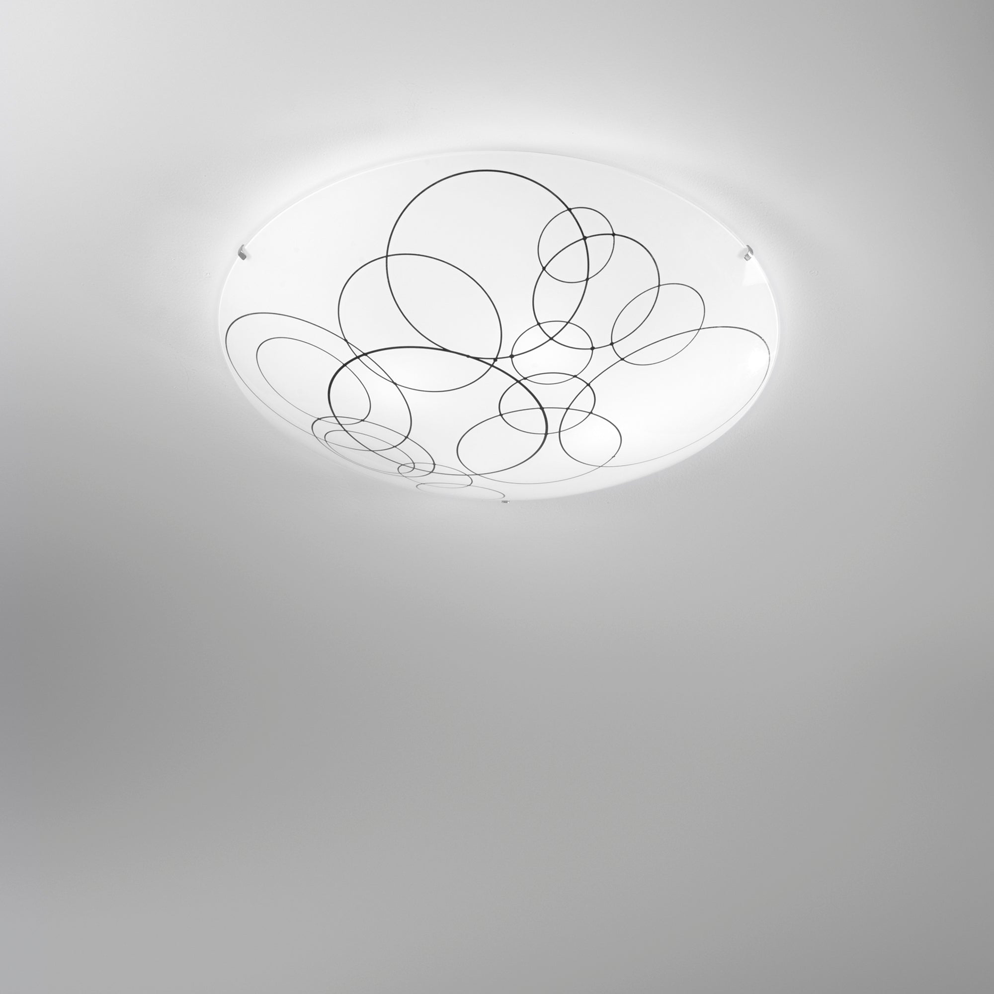 Toto nádherné svítidlo je vyrobeno z leštěného bílého skla s jemným černým kruhovým zdobením, které dodává prostoru nádech luxusu. Chromové háčky nejen podtrhují jeho sofistikovaný vzhled, ale také zajišťují stabilní a snadnou montáž.