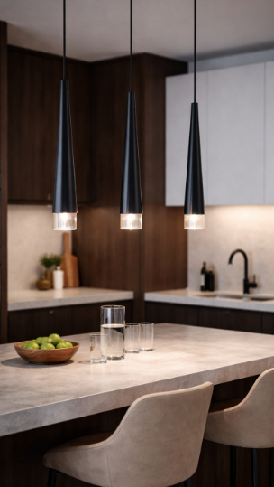 ✔️ Nad kuchyňský ostrůvek nebo barový pult.