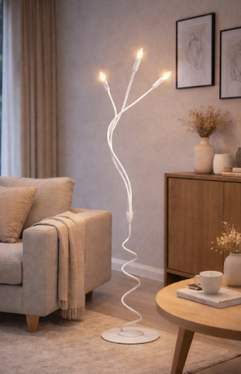 Stojací lampa FAN Europe LOVER v bílém provedení představuje originální spojení moderního designu a dekorativního osvětlení. Konstrukce tvořená flexibilními rameny s paticemi E14 vytváří dynamický světelný objekt, který připomíná současné světelné instalace.