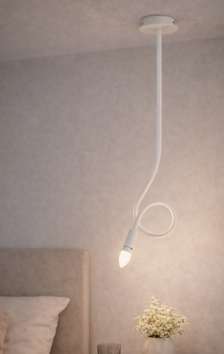 Závěsné svítidlo FAN Europe LOVER v bílém provedení představuje minimalistický a zároveň velmi originální design. Jednoduchá konstrukce s flexibilním ramenem zakončeným paticí E14 vytváří zajímavý dekorativní prvek připomínající moderní světelnou instalaci.