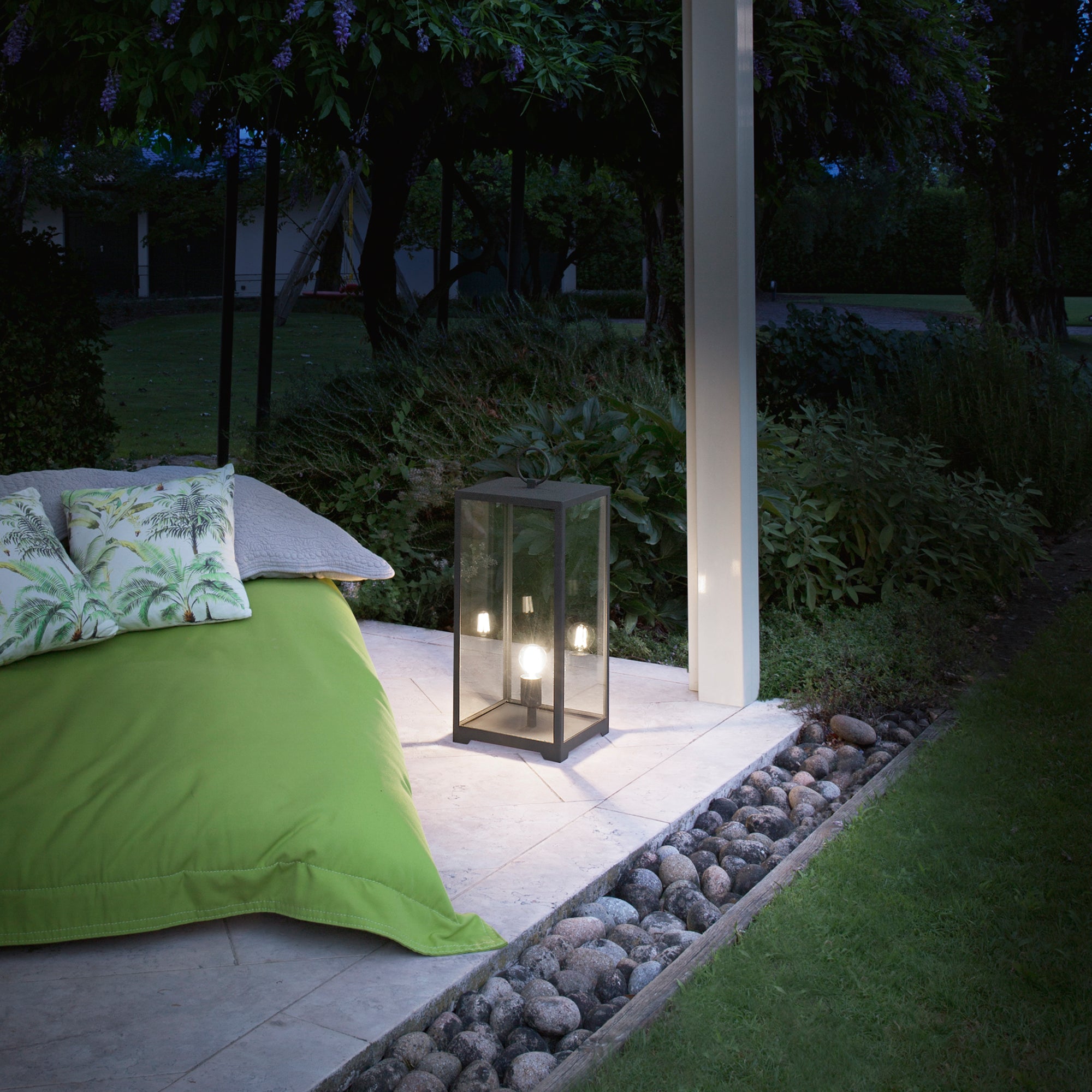 MIRAGE je kovová lucerna v antracitové barvě s průhledným skleněným difuzorem, která dodává vašemu venkovnímu prostoru útulnost a atmosféru. Jeho jednoduchý, ale elegantní design přitahuje pozornost a vytváří příjemné prostředí pro relaxaci nebo posezení s přáteli a rodinou.