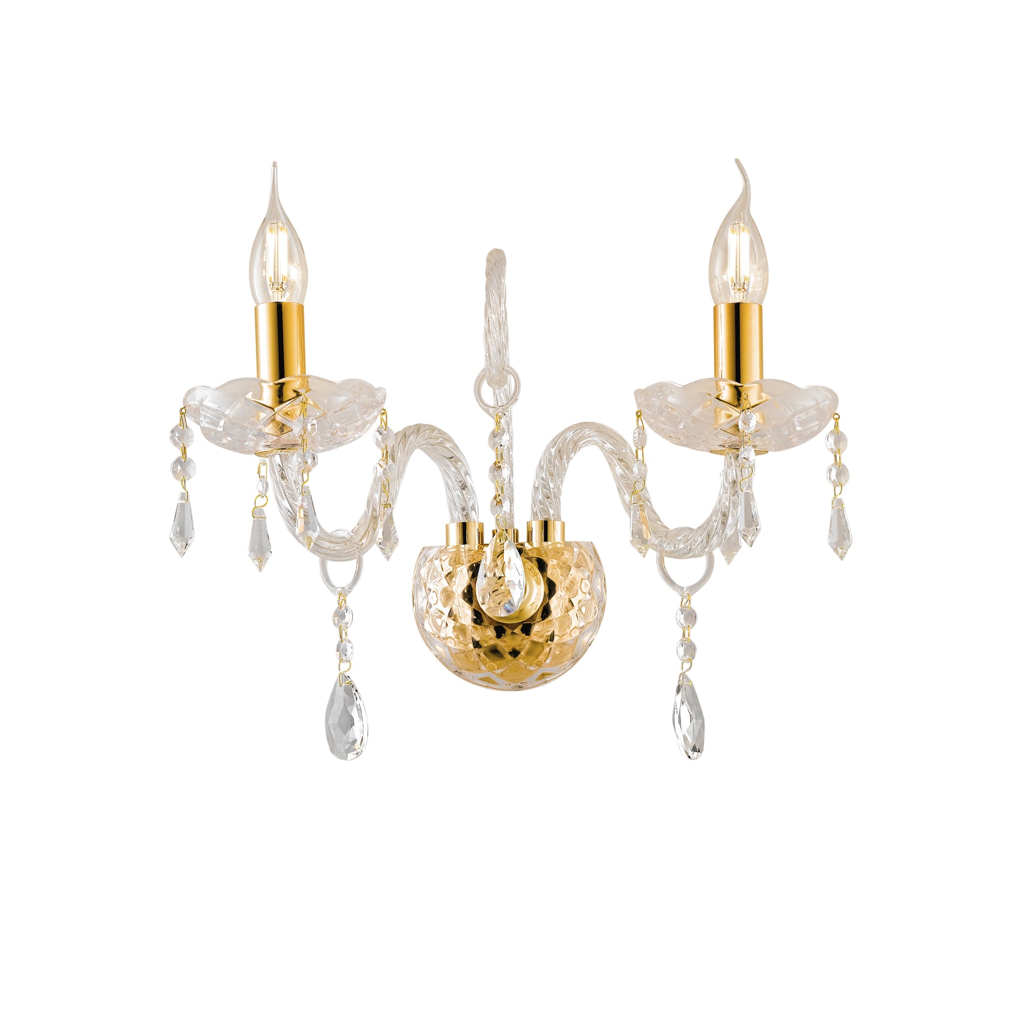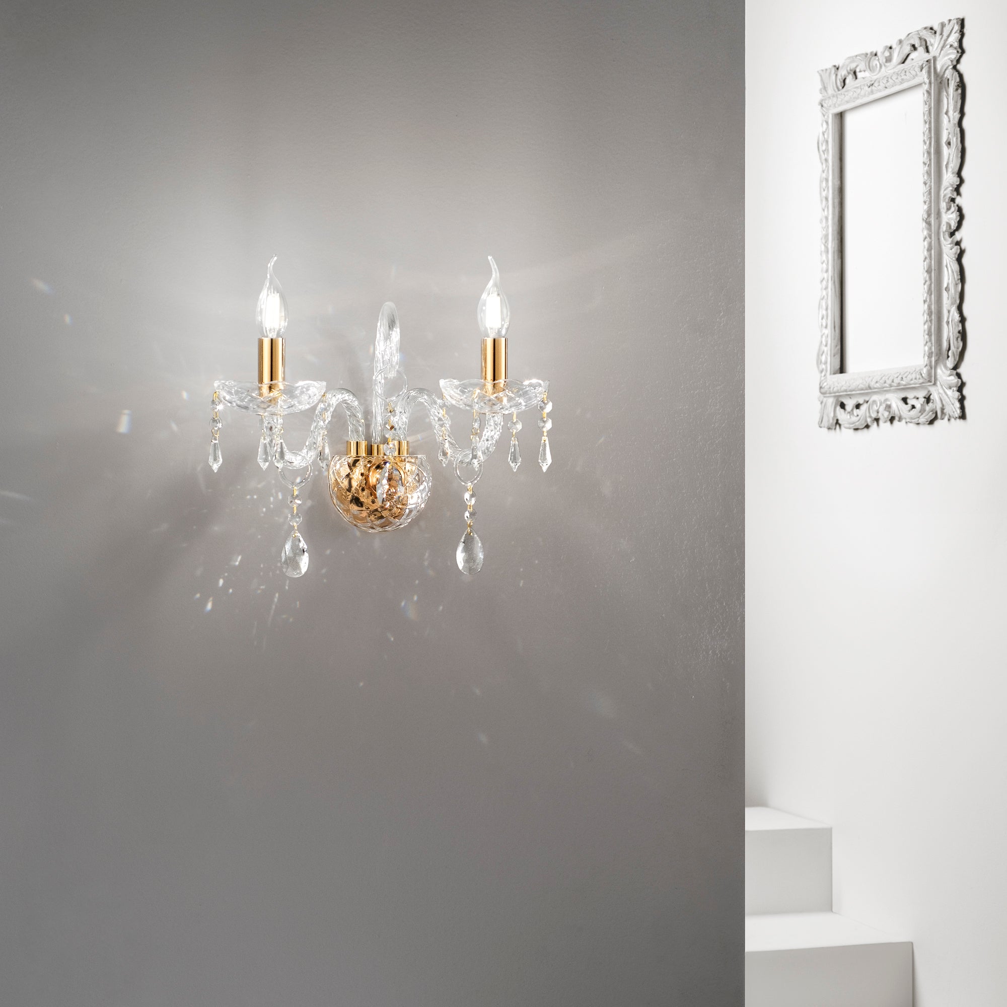 Vytvořte prostor, kde elegance a luxus kralují, s nástěnným svítidlem FAN Europe MONALISA. Jeho skleněná struktura zdobená krystaly a jemnou zlatou povrchovou úpravou vnáší do místnosti špetku glamouru a vytříbeného vkusu. Dva světelné zdroje se starají o harmonické osvětlení, které zalije váš interiér teplou a příjemnou atmosférou.