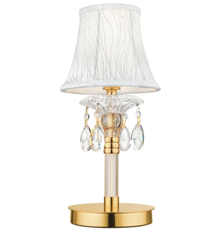 Tato stolní lampa od značky FAN Europe zaujme na první pohled svým luxusním provedením. Kombinace čirého skla, zlaté základny a jemného textilního stínidla vytváří harmonický celek, který působí sofistikovaně a nadčasově. Dekorativní křišťálové ověsy pod stínidlem dodávají lampě jemný třpyt a podtrhují její exkluzivní charakter.