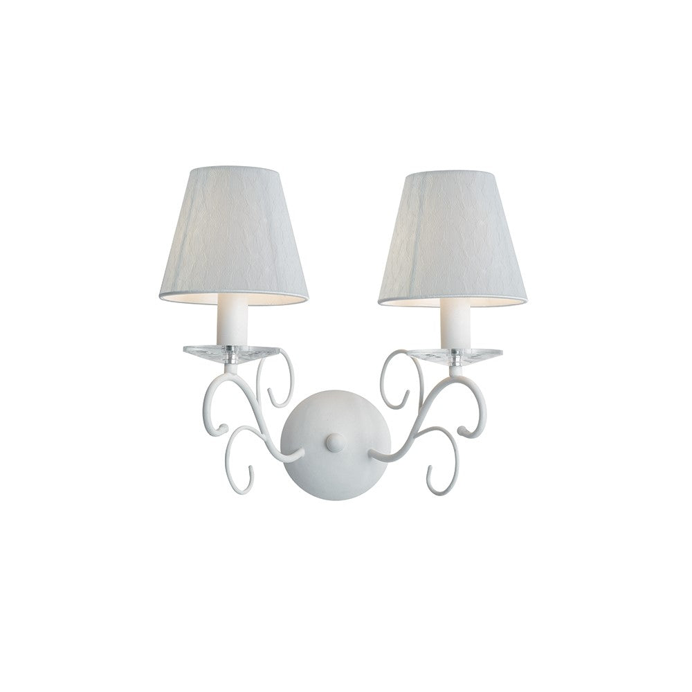 Svítidlo FAN Europe PERLA je synonymem pro eleganci a jemnost, která zkrášlí každý prostor. Toto nástěnné svítidlo, se dvěmi stínidly, spojuje krásu bílého kovu, křišťálů K9 a jemné bílých látkových stínidel, aby vytvořilo ideální rovnováhu mezi moderním designem a nadčasovou krásou. Světlo, které vychází z každého stínidla, přináší do místnosti jemnou, ale zároveň dostatečně intenzivní atmosféru, která osvěží a zklidní prostor.