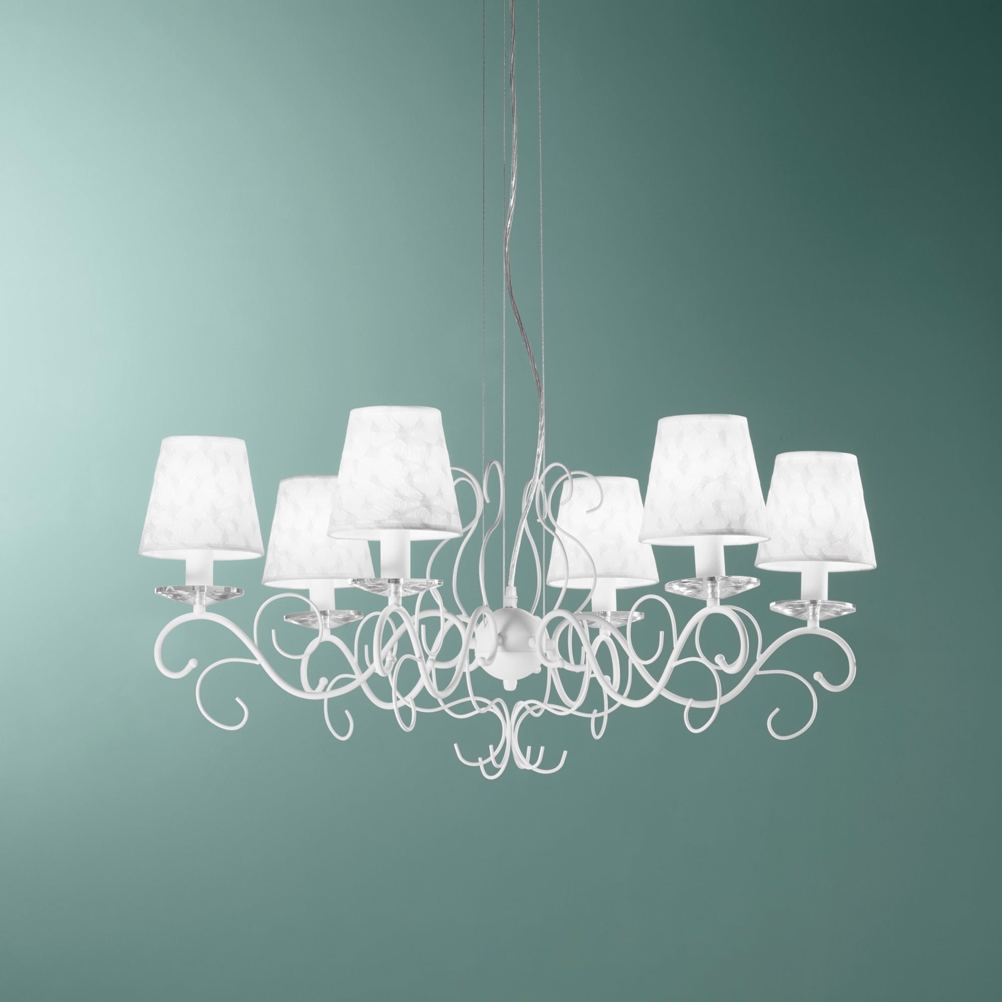 Svítidlo FAN Europe PERLA je synonymem pro eleganci a jemnost, která zkrášlí každý prostor. Toto závěsné svítidlo, s šesti stínidly, spojuje krásu bílého kovu, křišťálů K9 a jemné bílých látkových stínidel, aby vytvořilo ideální rovnováhu mezi moderním designem a nadčasovou krásou. Světlo, které vychází z každého stínidla, přináší do místnosti jemnou, ale zároveň dostatečně intenzivní atmosféru, která osvěží a zklidní prostor.