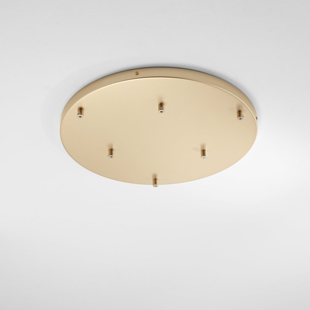 Kulatá montura PIREX od značky FAN Europe ve zlatém provedení představuje elegantní řešení pro vícesvětelné stropní instalace. Je navržena tak, aby sjednotila několik závěsných svítidel do jedné harmonické kompozice a vytvořila výrazný designový prvek.