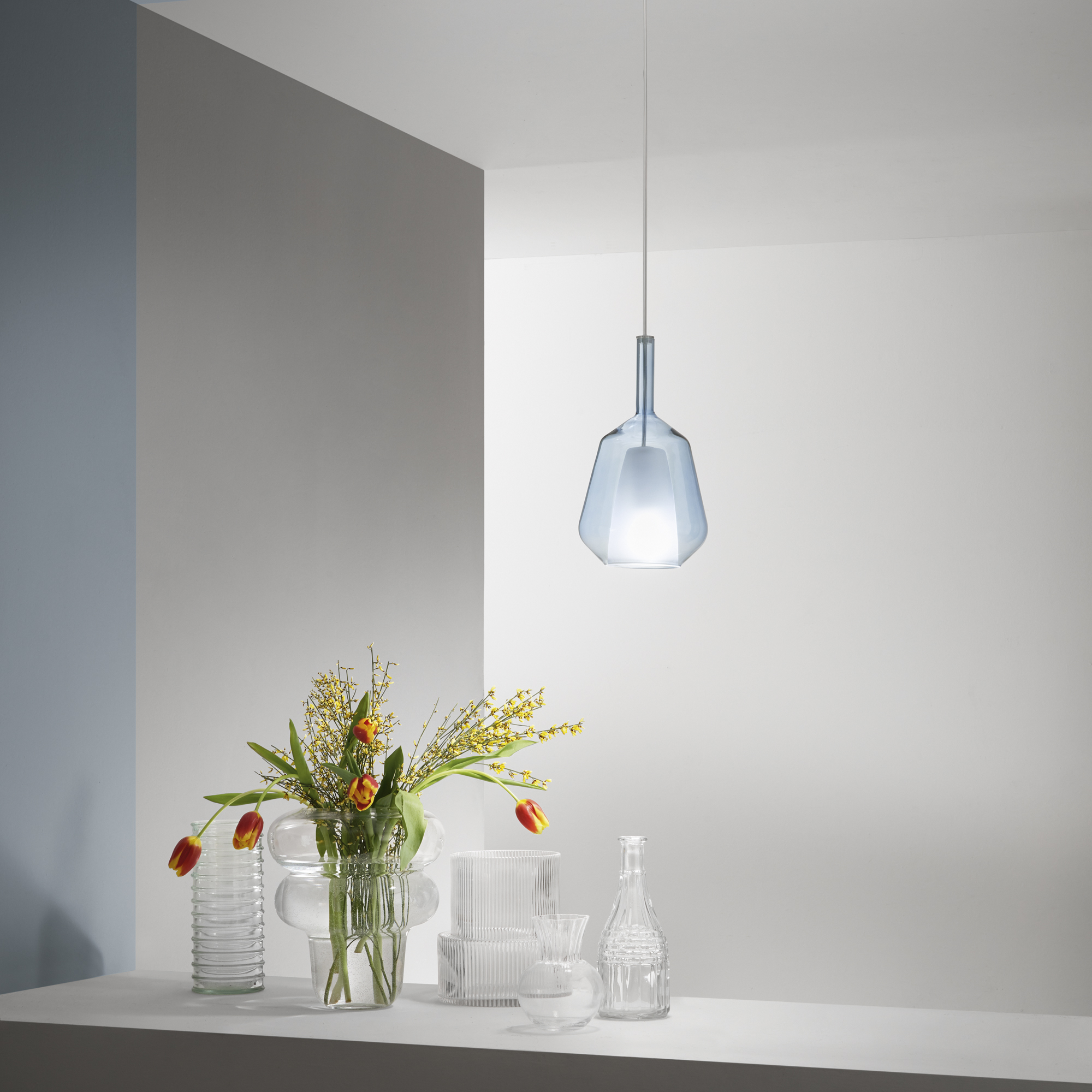 Závěsné svítidlo PIREX od italské značky FAN Europe je zosobněním elegance a kreativity. Modré foukané sklo z vnější strany a jemný opálově bílý vnitřek dodávají tomuto osvětlení unikátní charakter, který oslní v každém interiéru. PIREX nejen svítí, ale také zdobí – jeho design vnáší do prostoru teplo a luxus. Díky modulární konstrukci můžete přizpůsobit sestavu svítidel svým představám a vytvořit světelnou instalaci na míru.