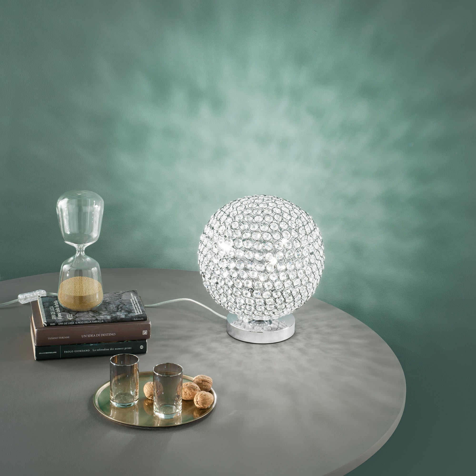 Přineste do svého prostoru záři a eleganci se stolní lampu FAN Europe PLANET, které ve tvaru koule vytváří okouzlující světelný efekt. Toto osvětlení, kombinující kovový rám a křišťálové krystaly K9, přináší do vašeho interiéru nejen kvalitní osvětlení, ale také výrazný designový prvek, který upoutá každého hosta.