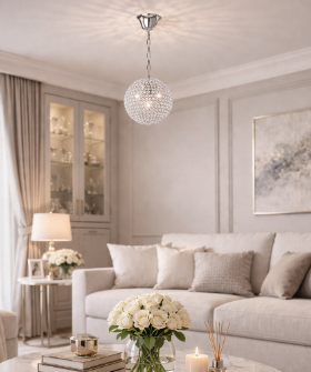 Závěsné svítidlo FAN Europe PLANET v menším provedení přináší ikonický kulový design v praktické velikosti. Precizně zasazené křišťály vytvářejí jemný třpyt a krásné světelné odlesky, které dodají interiéru elegantní a příjemnou atmosféru. Díky průměru 35 cm je ideální volbou do menších místností nebo jako stylové osvětlení nad jídelní stůl.