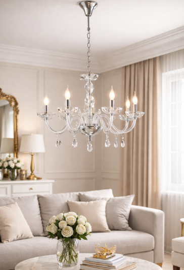 Závěsné svítidlo FAN Europe RIFLESSO v provedení s osmi rameny je dokonalým spojením klasické elegance a moderní lehkosti. Jemně tvarované skleněné konstrukce, doplněné o dekorativní křišťálové ověsy, vytváří působivou světelnou kompozici, která rozzáří každý interiér. Díky vyváženému designu nepůsobí těžce, ale naopak dodává prostoru vzdušnost a noblesu.