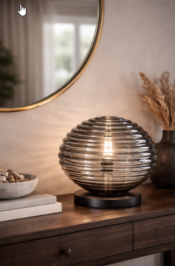 Stolní lampa RIPPLE od značky FAN Europe je výrazným designovým kouskem, který spojuje jemně tvarované kouřové sklo s minimalistickou černou základnou. Díky plastickému „vlnitému“ efektu skla vytváří světlo zajímavou hru odlesků a stínů. S průměrem Ø 32 cm se stane nepřehlédnutelným doplňkem obývacího pokoje, ložnice i stylové pracovny.